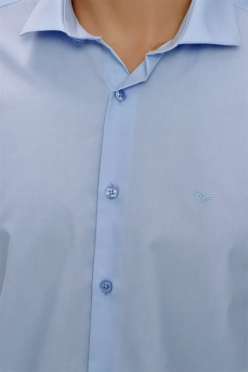 Slim Fit Mavi Erkek Gömlek | %100 Pamuk, Dar Kesim, Uzun Kol - Modazone