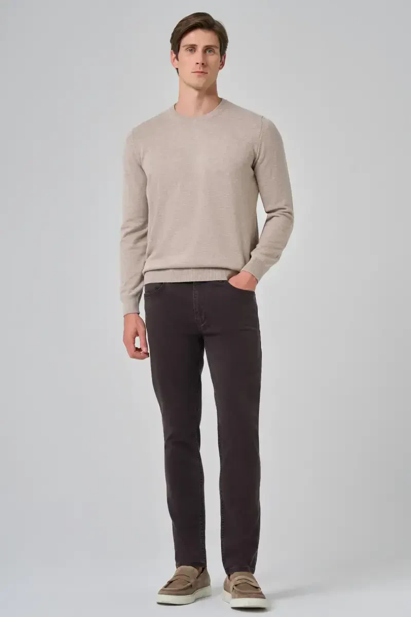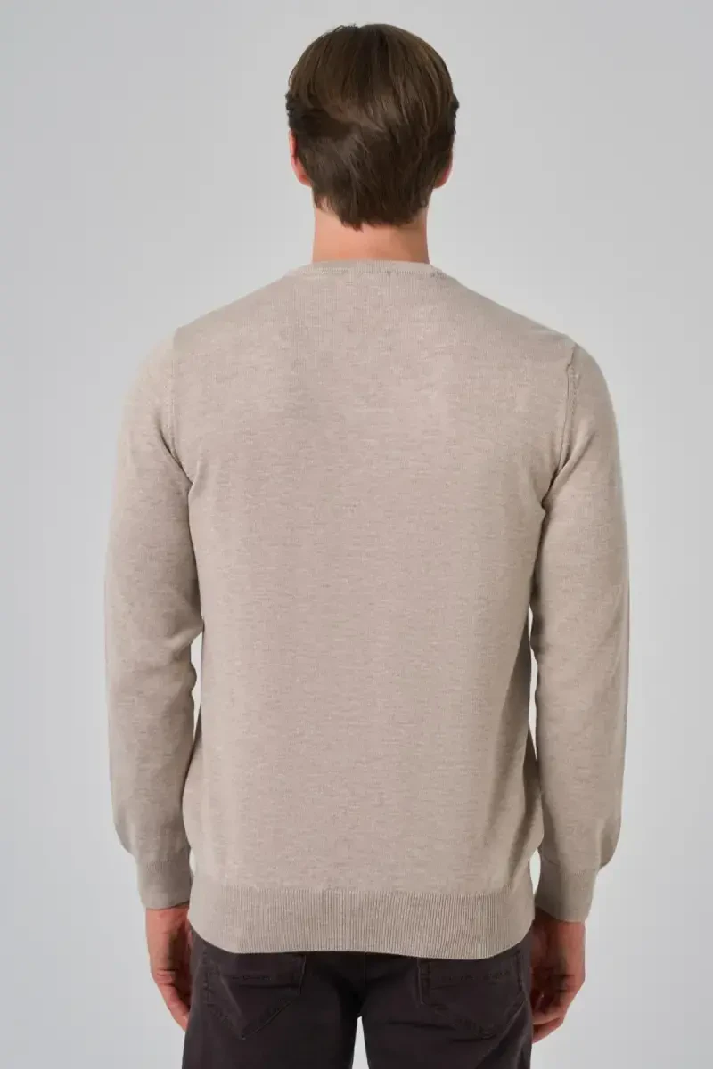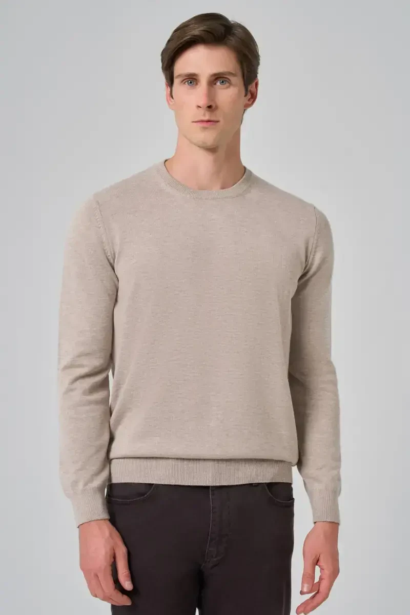 Men's Beige Knitwear - Crew Neck, Dynamic Fit | Moda Zonu