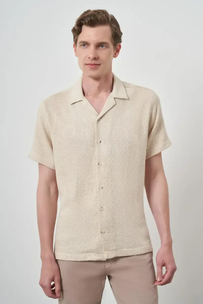 ModaZon Erkek Bej Trend Keten Regular Fit Apaş Yaka Kısa Kol Gömlek, modern erkeğin stil sahibi ve rahat seçimlerini bir araya getiriyor. Gömleğin regular fit kesimi, vücuda oturan ancak hareket özgürlüğünü kısıtlamayan bir siluet sunar. Bu sayede hem şık bir görünüm elde edebilir hem de gün boyu rahat edebilirsiniz. Apaş yaka detayı ise gömleğe farklı ve özgün bir hava katarak sıradanlıktan uzaklaşmanızı sağlar. Kısa kollu tasarımı, sıcak havalarda serin kalmanıza yardımcı olurken, keten kumaşın doğal dokusu ise cildinize nefes aldırır. Bej renginin zamansız şıklığı, gömleği hem günlük kullanım hem de özel etkinlikler için ideal bir seçenek haline getirir. Jean pantolonlarla spor bir görünüm elde edebilir, chino pantolonlarla daha şık bir kombin oluşturabilirsiniz. Aksesuar seçimiyle de tarzınızı kişiselleştirme imkanı bulursunuz. ModaZon kalitesiyle üretilen bu gömlek, uzun ömürlü kullanım sunar. Keten kumaşın dayanıklılığı ve dikişlerin özenli işçiliği, gömleğin formunu uzun süre korumasını sağlar. Yıkama talimatlarına uyarak gömleğinizi uzun yıllar boyunca ilk günkü gibi kullanabilirsiniz. ModaZon Erkek Bej Trend Keten Regular Fit Apaş Yaka Kısa Kol Gömlek, gardırobunuzun en sevilen parçalarından biri olacak. Şıklığı, rahatlığı ve kaliteyi bir arada sunan bu gömlek ile her ortamda farkınızı ortaya koyabilirsiniz. İster bir akşam yemeğinde ister hafta sonu gezisinde olsun, bu gömlek ile her zaman stil sahibi ve kendinden emin görüneceksiniz. ModaZon, erkek modasının nabzını tutmaya devam ediyor ve bu özel tasarım gömlek ile size şıklığı ve konforu bir arada sunuyor. Gardırobunuzu yenilemenin ve tarzınızı yansıtmanın tam zamanı!