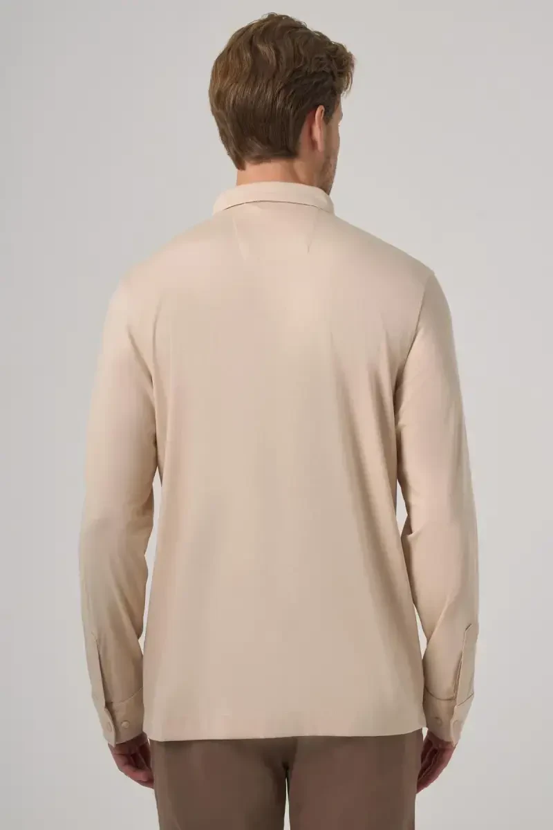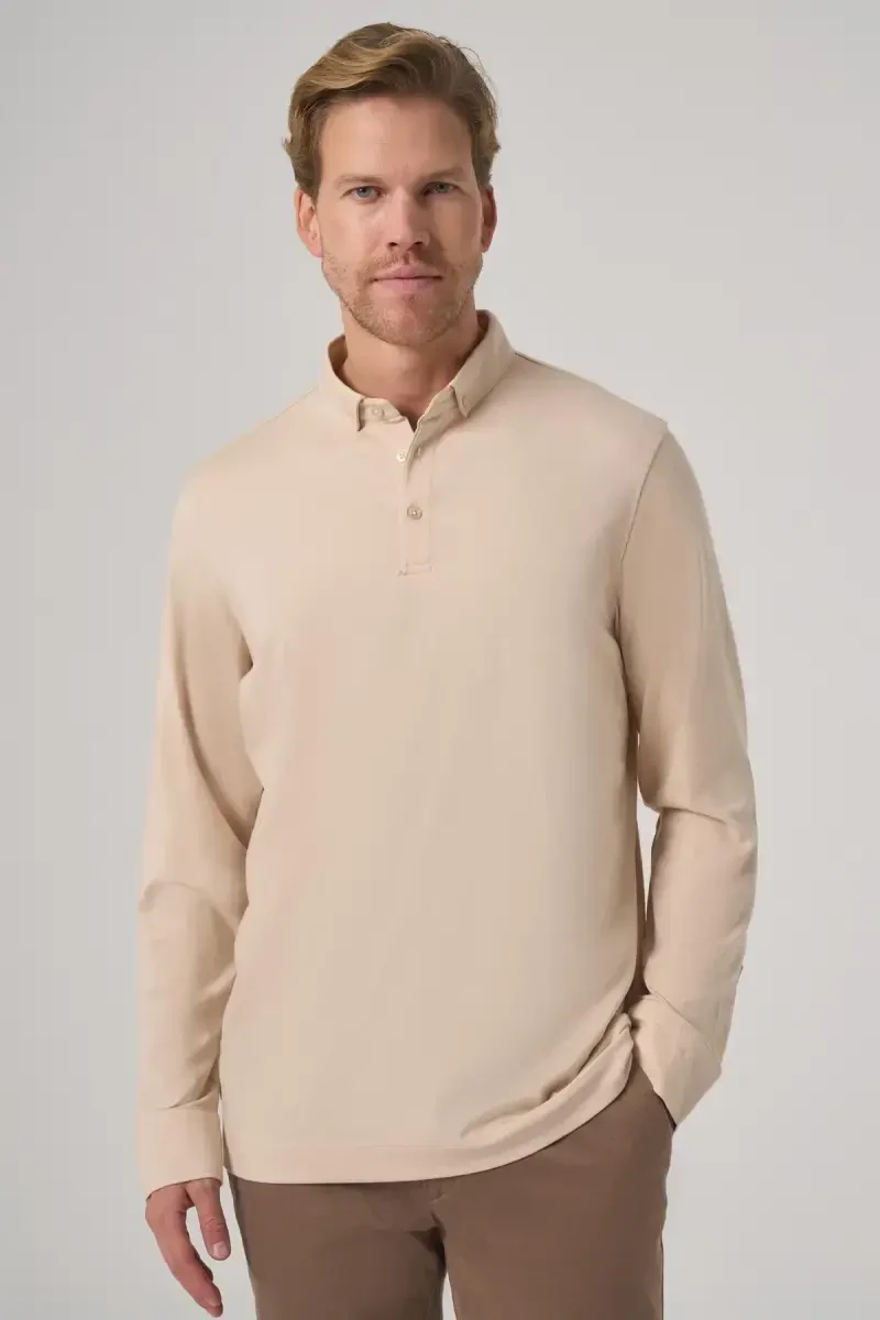 Modazone Bej Erkek Rayon Sweatshirt | Polo Yaka Trend Şıklık