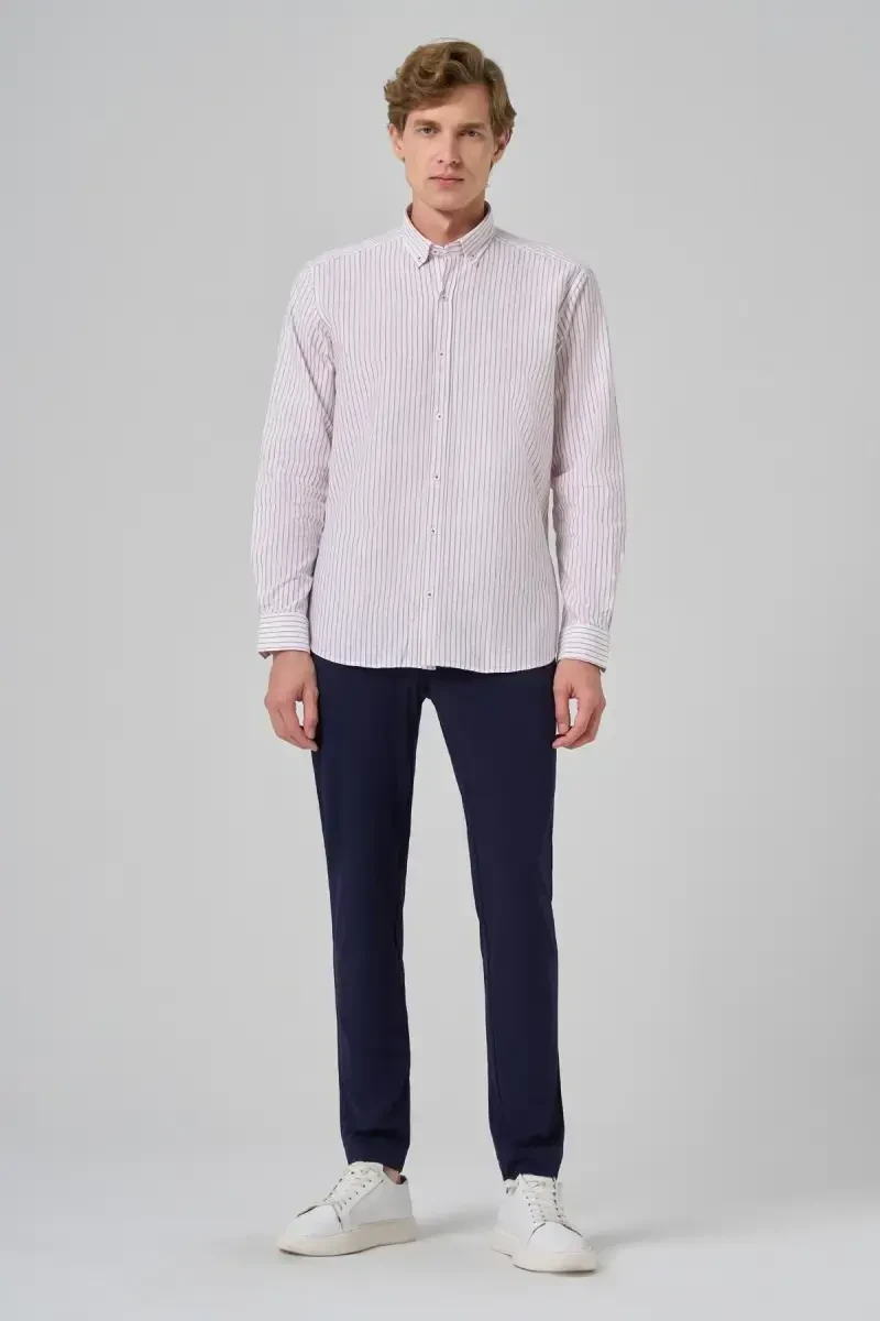 ModaZon Erkek Bordo Pamuk Çizgili Panolu Düğmeli Yaka Regular Fit Gömlek ile tarzınızı ve konforunuzu bir araya getirin. Bu özel tasarım gömlek, modern erkeğin gardırobunda olmazsa olmaz bir parçadır. İster günlük kullanımda, ister özel davetlerde şıklığınızı tamamlayacak bu gömlek, bordo rengi ve ince çizgili deseniyle göz kamaştırır. Gömleğin en dikkat çekici özelliklerinden biri, ön kısmında yer alan panolu detaydır. Bu panel, gömleğe farklı bir boyut kazandırarak sıradanlıktan uzaklaşmanızı sağlar. Düğmeli yakası, gömleği hem klasik hem de spor kombinlerle uyumlu hale getirir. Pamuklu kumaşın nefes alabilen yapısı, gün boyu rahatlık sunar. Terletmeyen özelliği sayesinde, özellikle sıcak havalarda tercih edebileceğiniz ideal bir seçenektir. Regular fit kesimi, vücuda tam oturarak şık bir siluet oluşturur, aynı zamanda hareket özgürlüğünüzü kısıtlamaz. Kaliteli dikişleri ve dayanıklı malzemesi sayesinde uzun yıllar boyunca ilk günkü gibi kullanabilirsiniz. ModaZon kalitesiyle üretilen bu gömlek, hem şıklığı hem de rahatlığı ön planda tutan erkekler için mükemmel bir seçimdir. Gömleği, klasik bir pantolon ve ceketle kombinleyerek iş ortamında kullanabilir, jean ve spor ayakkabılarla tamamlayarak daha casual bir görünüm elde edebilirsiniz. Aksesuar seçiminizle de gömleğin tarzını kolayca değiştirebilirsiniz. Bordo rengi, farklı renklerle kolayca uyum sağlayarak kombin yapma özgürlüğü sunar. ModaZon Erkek Bordo Pamuk Çizgili Panolu Düğmeli Yaka Regular Fit Gömlek ile her ortamda dikkat çekici ve şık olmanın keyfini çıkarın. Bu gömlek, sadece bir giysi değil, aynı zamanda tarzınızı yansıtmanın ve kendinizi iyi hissetmenin bir yoludur. Gardırobunuzun en sevilen parçalarından biri olacağına emin olabilirsiniz. ModaZon farkıyla, kaliteyi ve şıklığı bir arada deneyimleyin.