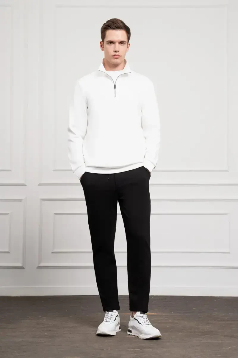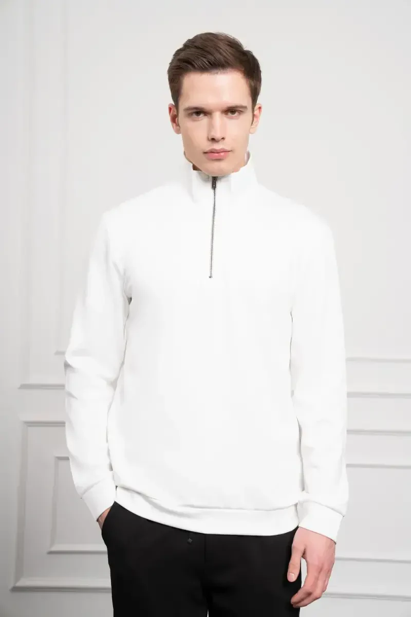 Dik Yaka Beyaz Sweatshirt 0610965-83043-Beyaz