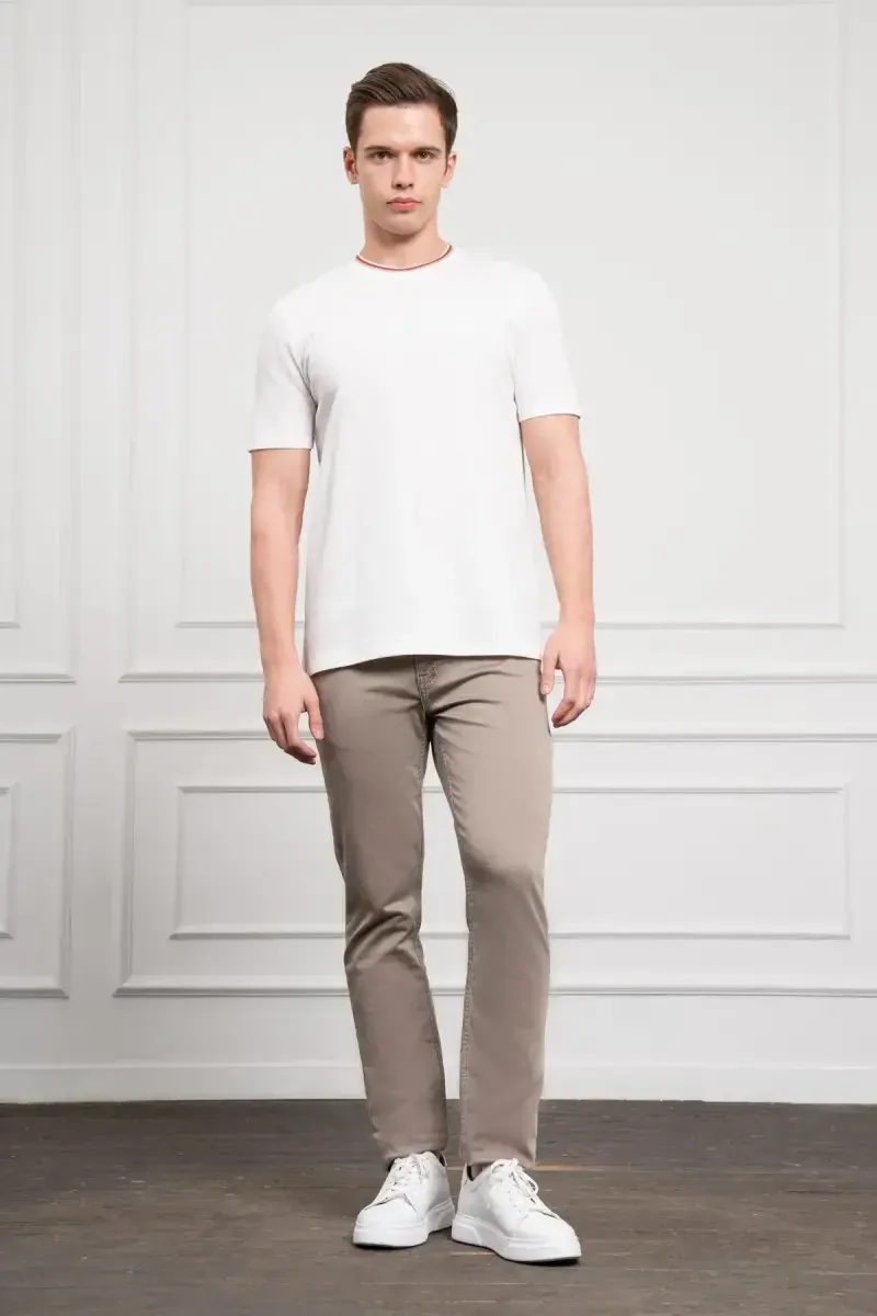Modazone Erkek Ekru Trend Bisiklet Yaka Dinamik Fit T-Shirt ile tarzınızı yeniden tanımlayın. Bu tişört, modern erkeğin stil ihtiyaçlarını karşılamak üzere özenle tasarlanmıştır. Bisiklet yaka detayı, tişörte farklı ve sofistike bir hava katarken, dinamik fit kesimi vücuda oturan yapısıyla şık bir görünüm sunar. Ekru rengi, hem klasik hem de modern kombinler için mükemmel bir temel oluşturur. İster jeanlerle spor bir tarz yaratın, ister şık bir pantolonla daha resmi bir görünüm elde edin, bu tişört her ortama kolayca adapte olabilir.Yüksek kaliteli kumaşı sayesinde gün boyu konforlu bir kullanım deneyimi sunan Modazone tişört, nefes alabilen yapısıyla terlemeyi önler ve cildinizi rahat tutar. Uzun ömürlü olması için özel olarak tasarlanan bu tişört, yıkama sonrası da ilk günkü formunu korur. Dikiş detaylarındaki özen, tişörtün kalitesini ve dayanıklılığını artırır. Gardırobunuzun vazgeçilmez bir parçası olacak bu tişört, her mevsim giyilebilir yapısıyla size eşlik eder.Modazone Erkek Ekru Trend Bisiklet Yaka Dinamik Fit T-Shirt, sadece şık değil, aynı zamanda fonksiyonel bir üründür. Hareket özgürlüğünüzü kısıtlamayan kesimi, gün içindeki aktivitelerinizde rahat etmenizi sağlar. İster ofiste çalışırken, ister arkadaşlarınızla buluşurken, ister seyahat ederken, bu tişört size her zaman konfor ve stil sunar. Kumaşının yumuşak dokusu, teninizle uyum içinde olup gün boyu rahatlık hissi verir.Bu tişört, stil sahibi erkeklerin beğenisini kazanacak detaylara sahiptir. Minimalist tasarımı, farklı aksesuarlarla kolayca tamamlanabilir. Bir kol saati, şık bir bileklik veya bir fular ile tişörtünüzü kişiselleştirebilir ve tarzınızı yansıtabilirsiniz. Modazone Erkek Ekru Trend Bisiklet Yaka Dinamik Fit T-Shirt, sadece bir giyim eşyası değil, aynı zamanda bir stil ifadesidir. Bu tişört ile hem şık hem de rahat olmanın keyfini çıkarın. Kendi stilinizi yaratmak ve öne çıkmak için mükemmel bir seçimdir. Her erkeğin gardırobunda olması gereken bu özel tasarım, stilinizi yükseltmek için ideal bir başlangıç noktasıdır.