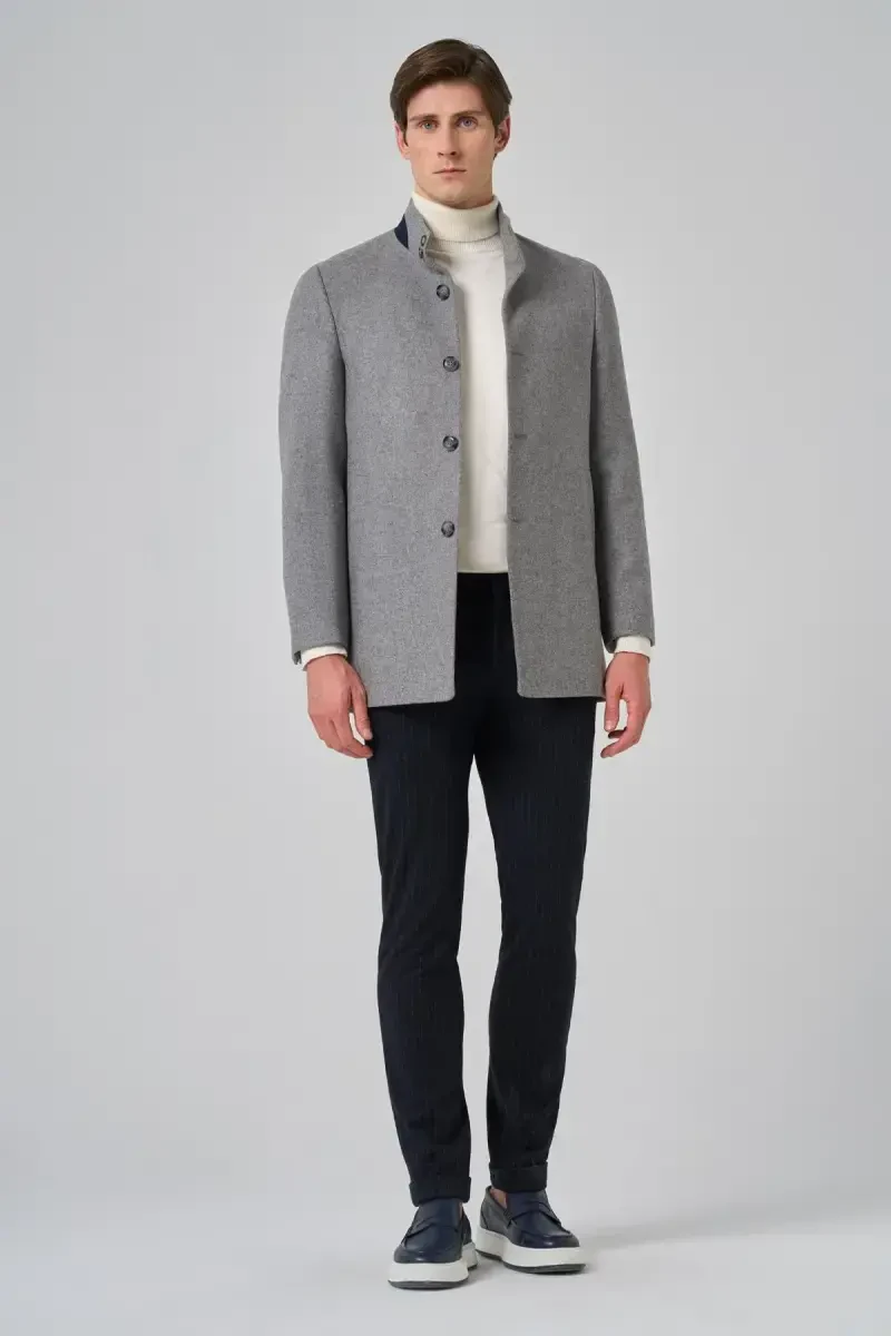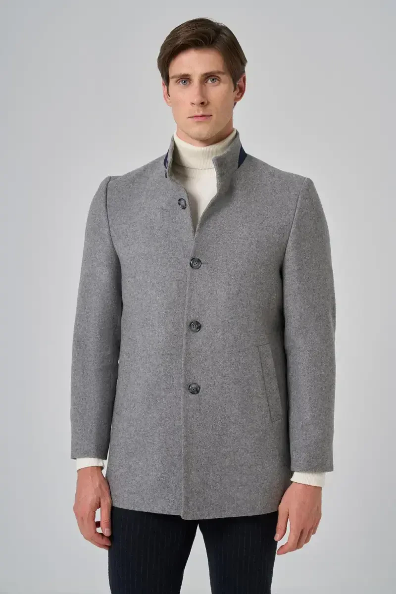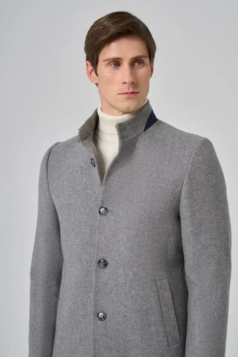 Erkek Gri Kaban | Hakim Yaka Dynamic Fit | Modazone Şıklığı