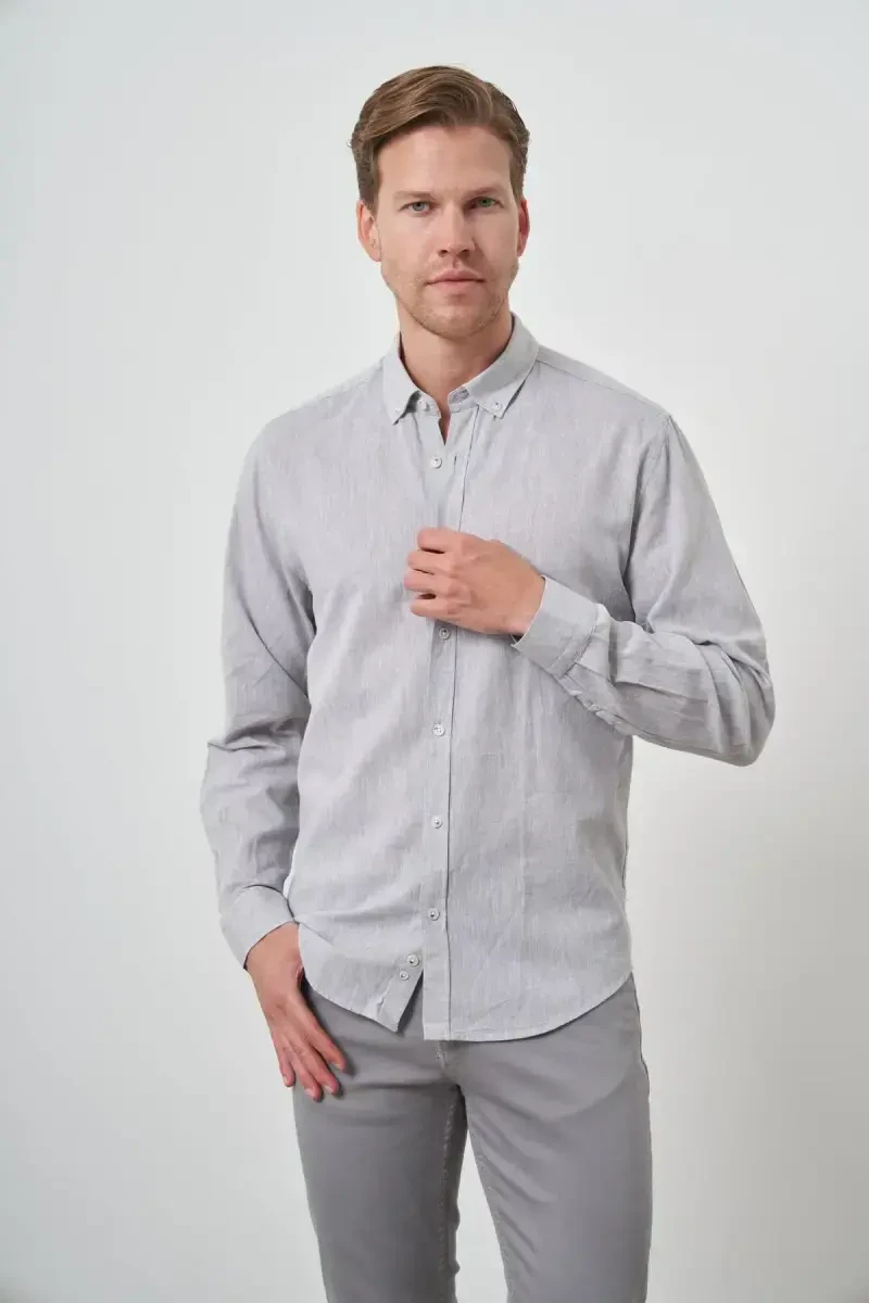 ModaZon Мужская Серая Льняная Модная Рубашка Dynamic Fit с Застегивающимся Воротником – незаменимая вещь в гардеробе стильных мужчин. 100% льняная ткань, которая сохраняет прохладу и свежесть даже в жаркие и душные летние дни, обеспечивает комфорт в течение всего дня благодаря своей дышащей структуре. Вневременная элегантность серого цвета легко сочетается с любыми комбинациями, предлагая вам широкую область применения. Вы можете отразить свой стиль, сочетая ее с джинсами в повседневной жизни или с элегантными тканевыми брюками на светском мероприятии. Крой Dynamic Fit идеально сидит по фигуре, создавая современный и динамичный силуэт. Структура рубашки, не ограничивающая свободу движений, позволяет вам чувствовать себя комфортно в течение всего дня. Деталь с застегивающимся воротником придает рубашке особую атмосферу, адаптируясь как к классическому, так и к спортивному стилю. Вы можете создать более непринужденный и повседневный вид, оставив воротник расстегнутым, или создать более официальный и элегантный стиль, застегнув пуговицы. Мужская серая льняная рубашка ModaZon выделяется не только своей элегантностью, но и простотой в использовании. Благодаря натуральной структуре льняной ткани ее легко гладить и она долговечна. При соблюдении инструкций по стирке она надолго сохранит свою первоначальную форму и цвет. Эта рубашка станет незаменимой вещью в вашем гардеробе и всегда будет дарить вам стильный и ухоженный вид. Поднимите свой стиль на новый уровень с помощью этой рубашки, которая является одной из лучших инвестиций, которые вы можете сделать для себя. ModaZon всегда стремится предлагать лучшее благодаря своим дизайнам, определяющим мужскую моду. Эта рубашка, являясь продуктом этого понимания, сочетает в себе качественные материалы, тщательное изготовление и современный дизайн. Подчеркните свой стиль и покажите свою индивидуальность с помощью мужской серой льняной модной рубашки Dynamic Fit с застегивающимся воротником от ModaZon.