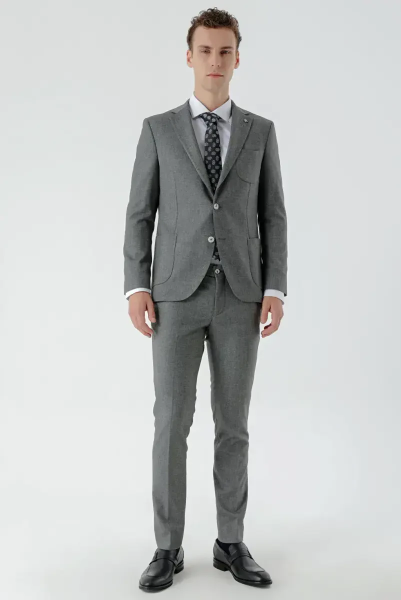 Moda Zevkinizi Yansıtan Trend Tasarım: Modazone Erkek Gri Poliviskon Desenli Slim Fit Takım Elbise ile Şıklığı Yakalayın!