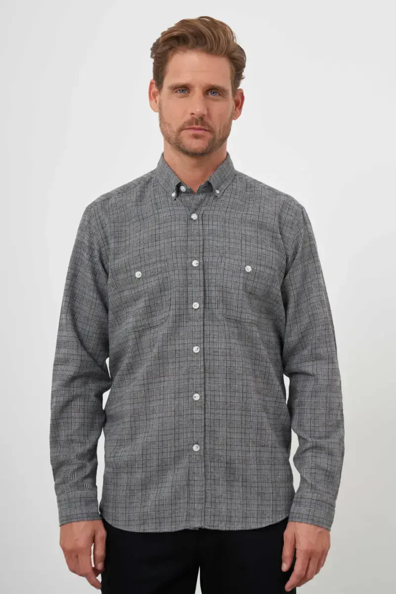 Erkek Gri Oduncu Gömlek | Ekoseli Trend Regular Fit | ModaZon