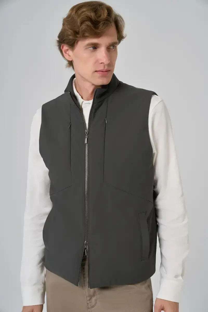 Morven Erkek Haki Polyamide Spor Gizli Cep Fermuarlı Yelek
