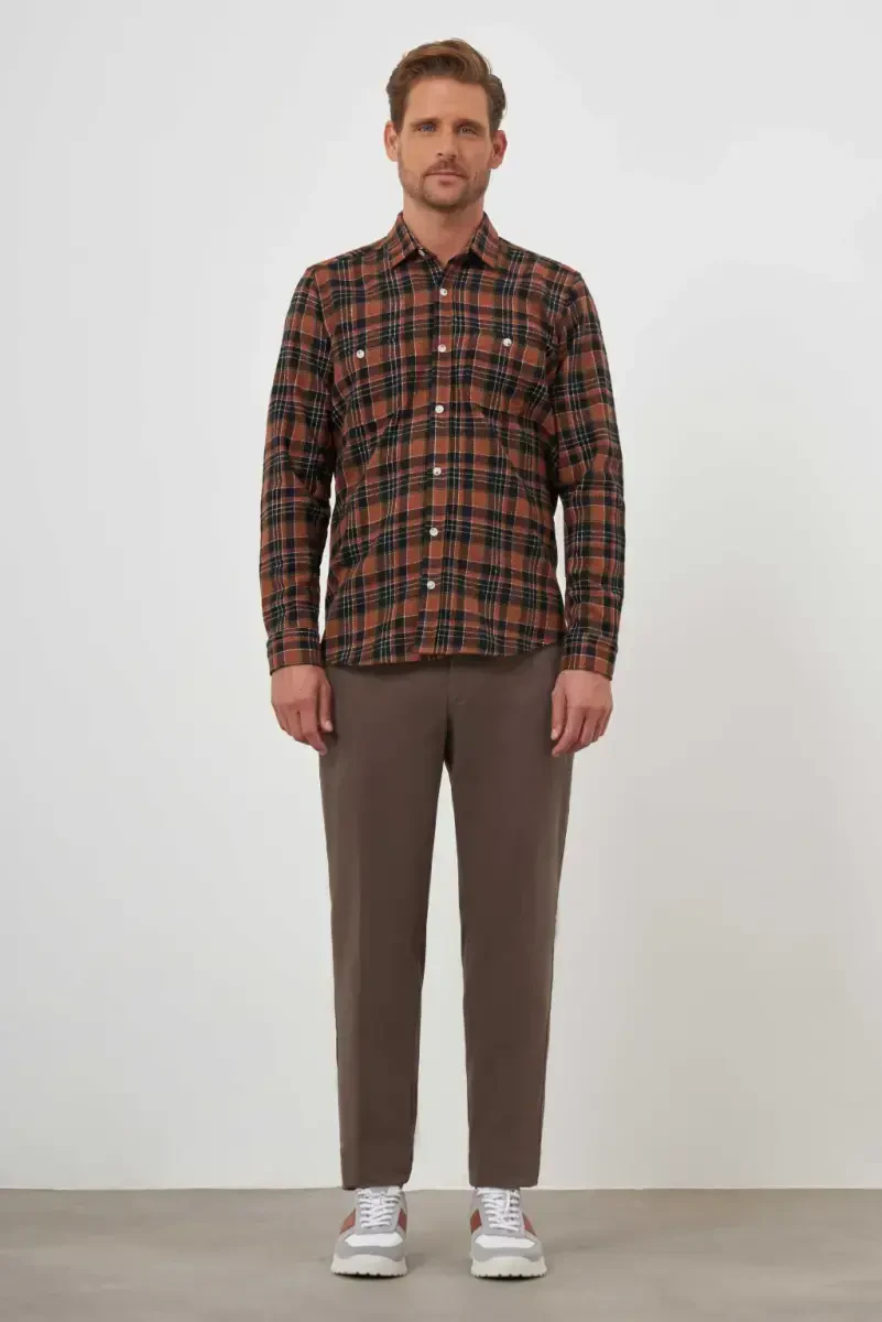 ModaZon Erkek Kahve Trend Ekoseli Regular Fit Düğmeli Yaka Oduncu Gömlek ile tarzınıza doğallık ve şıklık katın! Bu özel tasarım gömlek, modern erkeğin gardırobunda mutlaka bulunması gereken bir parça. Gerek günlük kullanımda gerekse özel anlarda rahatlıkla tercih edebileceğiniz bu gömlek, hem konforu hem de stil sahibi görünümü bir arada sunuyor.Kahverengi tonlarının hakim olduğu ekose deseni, oduncu gömleği konseptine modern bir yorum getiriyor. Bu sayede hem klasik hem de trend bir görünüm elde etmeniz mümkün. Gömleğin regular fit kesimi, vücuda rahatça otururken hareket özgürlüğünüzü kısıtlamaz. Böylece gün boyu konforlu bir kullanım deneyimi yaşarsınız.Yüksek kaliteli pamuklu kumaştan üretilmiş olması, gömleğin nefes alabilirliğini artırarak terlemeyi önler. Bu sayede özellikle sıcak havalarda bile rahatlıkla giyebilirsiniz. Aynı zamanda pamuklu kumaş, gömleğin uzun ömürlü olmasını sağlar ve yıkama sonrası kolayca ütülenebilir.Düğmeli yaka detayı, gömleğe şık bir dokunuş katarken, farklı kombinler yapmanıza da olanak tanır. İster düğmelerini tamamen kapatarak klasik bir görünüm elde edin, isterseniz birkaç düğmesini açarak daha rahat ve spor bir tarz yaratın. Jean pantolonlar, chino pantolonlar veya kanvas pantolonlarla kolayca kombinleyebilir, tarzınızı dilediğiniz gibi yansıtabilirsiniz.ModaZon Erkek Kahve Trend Ekoseli Oduncu Gömlek, hafta sonu gezmelerinden arkadaş buluşmalarına, ofisten akşam yemeklerine kadar her ortama uyum sağlayabilecek çok yönlü bir parçadır. Şıklığı ve rahatlığı bir arada arayan erkekler için ideal bir seçimdir. Bu gömleği gardırobunuza ekleyerek, her zaman stil sahibi ve bakımlı bir görünüme sahip olabilirsiniz. Tarzınızı yansıtan, konforlu ve şık bir seçenek arıyorsanız, bu oduncu gömleği tam size göre!