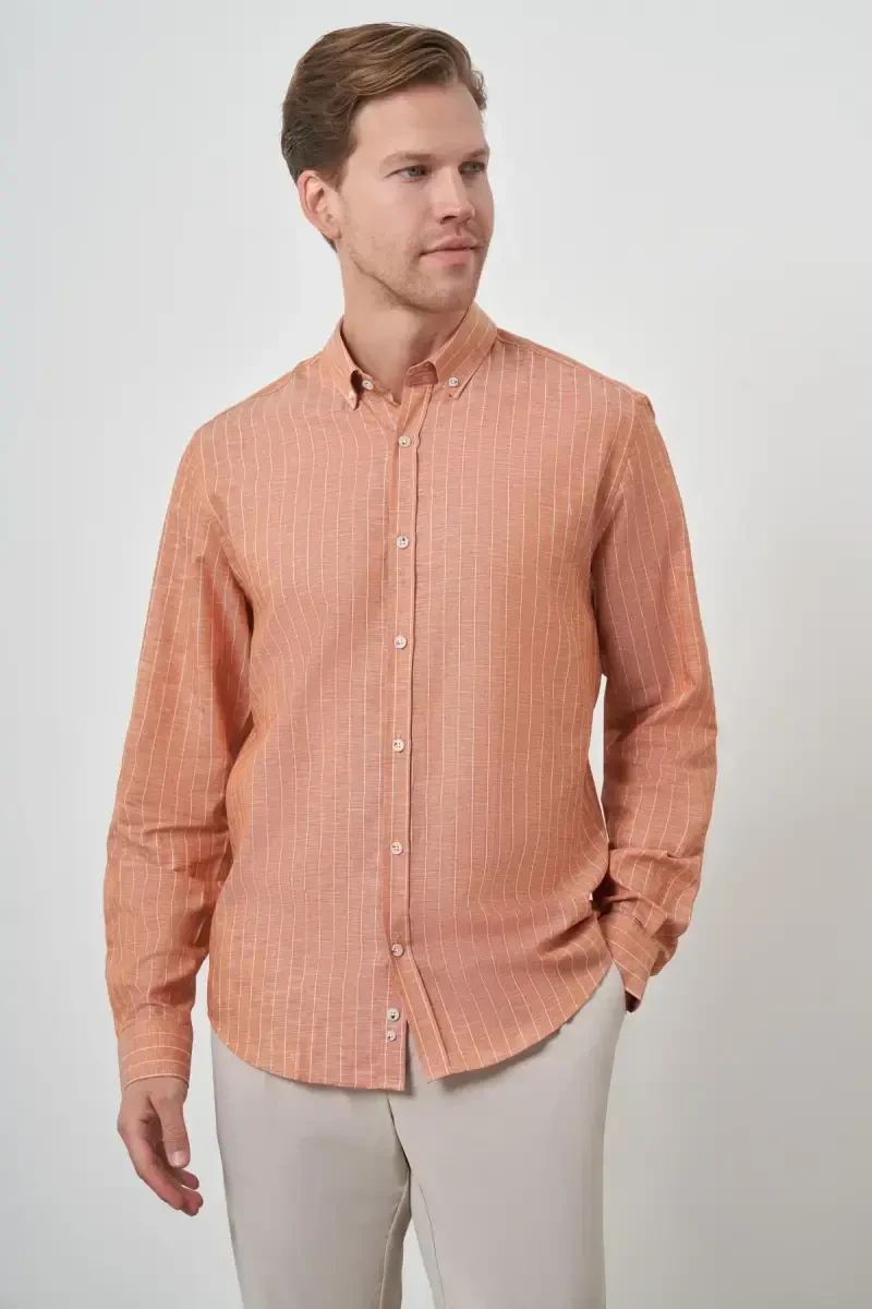 ModaZon Erkek Kiremit Keten Dynamic Fit Düğmeli Yaka Gömlek ile sıcak havalarda stilinizden ödün vermeden konforun tadını çıkarın. Bu gömlek, keten kumaşının eşsiz hafifliği ve nefes alabilir yapısıyla, yaz aylarında gardırobunuzun en sevilen parçası olmaya aday. Kiremit rengi, hem gündüz hem de gece kombinlerinize kolayca uyum sağlayarak, şıklığınızı ön plana çıkarır. Dynamic fit kesimi sayesinde vücudunuzu saran, modern ve fit bir görünüm elde ederken, hareket özgürlüğünüzden de ödün vermezsiniz. Düğmeli yaka detayı, gömleğe sofistike bir hava katarken, farklı tarzlara uyum sağlayabilme özelliği sunar. İster şık bir pantolonla özel bir davete katılın, ister günlük bir şortla rahat bir hafta sonu geçirin, ModaZon keten gömlek her ortamda size eşlik edecek. Ketenin doğal dokusu, cildinize yumuşak bir temas sağlarken, terlemeyi en aza indirerek gün boyu ferah kalmanıza yardımcı olur. Gömleğin kiremit rengi, toprak tonlarıyla uyum sağlayarak doğal ve şık bir görünüm yaratır. Ayrıca, açık renkli pantolonlar veya jeanlerle de harika bir kontrast oluşturarak stilinizi daha da belirginleştirebilirsiniz. ModaZon, kaliteyi ve şıklığı bir araya getirerek, her erkeğin gardırobunda olması gereken bir parçayı sunar. Bu gömlek, sadece bir giysi değil, aynı zamanda bir yaşam tarzı ifadesidir. Kendinizi iyi hissetmek ve şık görünmek istediğiniz her an, ModaZon Erkek Kiremit Keten Dynamic Fit Düğmeli Yaka Gömlek sizin için doğru tercih olacaktır. Gömleğin düğmeleri kaliteli malzemeden üretilmiş olup, uzun ömürlü kullanım sağlar. Düğmelerin gömlekle uyumlu renk tonları, gömleğin genel tasarımına zarif bir dokunuş katar. Gömleğin dikişleri titizlikle yapılmış olup, uzun süreli kullanıma dayanıklıdır. Yüksek kaliteli keten kumaşı, kolayca kırışmaz ve ütülenmesi kolaydır, bu da size zaman kazandırır. ModaZon, her detayda kaliteyi ön planda tutarak, müşteri memnuniyetini en üst düzeye çıkarmayı hedefler. Bu gömlek, hem kendiniz için harika bir hediye seçeneği, hem de sevdiklerinize verebileceğiniz anlamlı bir armağandır. Şıklığı, konforu ve kaliteyi bir arada arayan erkekler için ideal bir seçimdir. ModaZon ile tarzınızı yansıtın ve her ortamda fark yaratın.