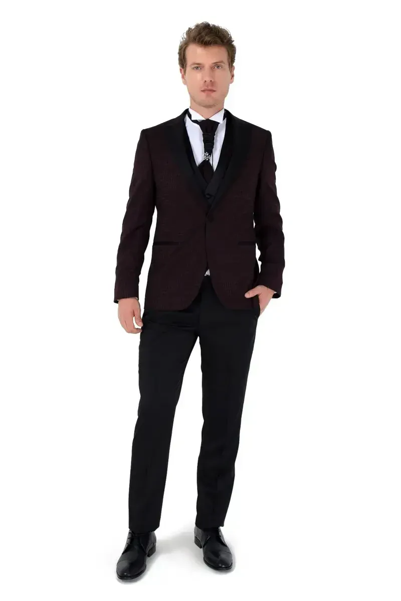 Элегантность, отражающая ваш вкус в моде: незабываемый образ с мужским темно-бордовым костюмом-тройкой Newyork от Modazone!Разве вы не хотите выглядеть так, как мечтали, в свой особенный день? Мужской темно-бордовый костюм-тройка Newyork от Modazone сочетает в себе элегантность и современный дизайн, предлагая вам незабываемые впечатления. С этим специальным дизайнерским костюмом, который привлечет всеобщее внимание в день вашей свадьбы, вы сможете наилучшим образом отразить свой стиль.Этот костюм, сочетающий в себе благородство темно-бордового цвета и современный стиль модели Newyork, тщательно разработан в каждой детали. Дизайн с жилетом придает новый вид классическим моделям костюмов, поднимая вашу элегантность на новый уровень. Благодаря качественной ткани и безупречному мастерству вы можете чувствовать себя комфортно и свободно в течение всего дня.Мужской темно-бордовый костюм-тройка Newyork от Modazone — это универсальный вариант, который позволит вам продемонстрировать свою элегантность не только в день свадьбы, но и на специальных мероприятиях и торжествах. Вы можете персонализировать свой стиль, дополняя свои наряды различными аксессуарами.Этот эксклюзивный дизайнерский костюм подарит вам не просто одежду, а еще и уверенность в себе. Выберите мужской темно-бордовый костюм-тройку Newyork от Modazone, чтобы увенчать свои незабываемые воспоминания и заставить вас улыбаться даже спустя годы.Познакомьтесь с мужским темно-бордовым костюмом-тройкой Newyork от Modazone, чтобы почувствовать себя особенным, отразить свой стиль и выглядеть так, как вы мечтали, в свой особенный день. Этот костюм, сочетающий в себе элегантность, комфорт и качество, ждет вас!Выбор костюма, являющийся одним из важнейших этапов подготовки к свадьбе, должен быть особенным решением, отражающим вашу индивидуальность и стиль. Мужской темно-бордовый костюм-тройка Newyork от Modazone — это вариант, который облегчит вам принятие этого особого решения, придаст вам уверенность в себе и элегантность. Помните, это не просто костюм, это еще и воспоминание, и начало.Этот костюм, разработанный с качеством Modazone, станет незаменимой частью вашего гардероба на долгие годы. С этим костюмом, в котором вы сможете продемонстрировать свою элегантность на особых мероприятиях и торжествах и наилучшим образом отразить свой стиль, вы всегда будете привлекать к себе внимание.Выберите мужской темно-бордовый костюм-тройку Newyork от Modazone, чтобы получить безупречный внешний вид и создать незабываемые воспоминания в день вашей свадьбы. Ослепляйте своей элегантностью, выделяйтесь своим стилем!