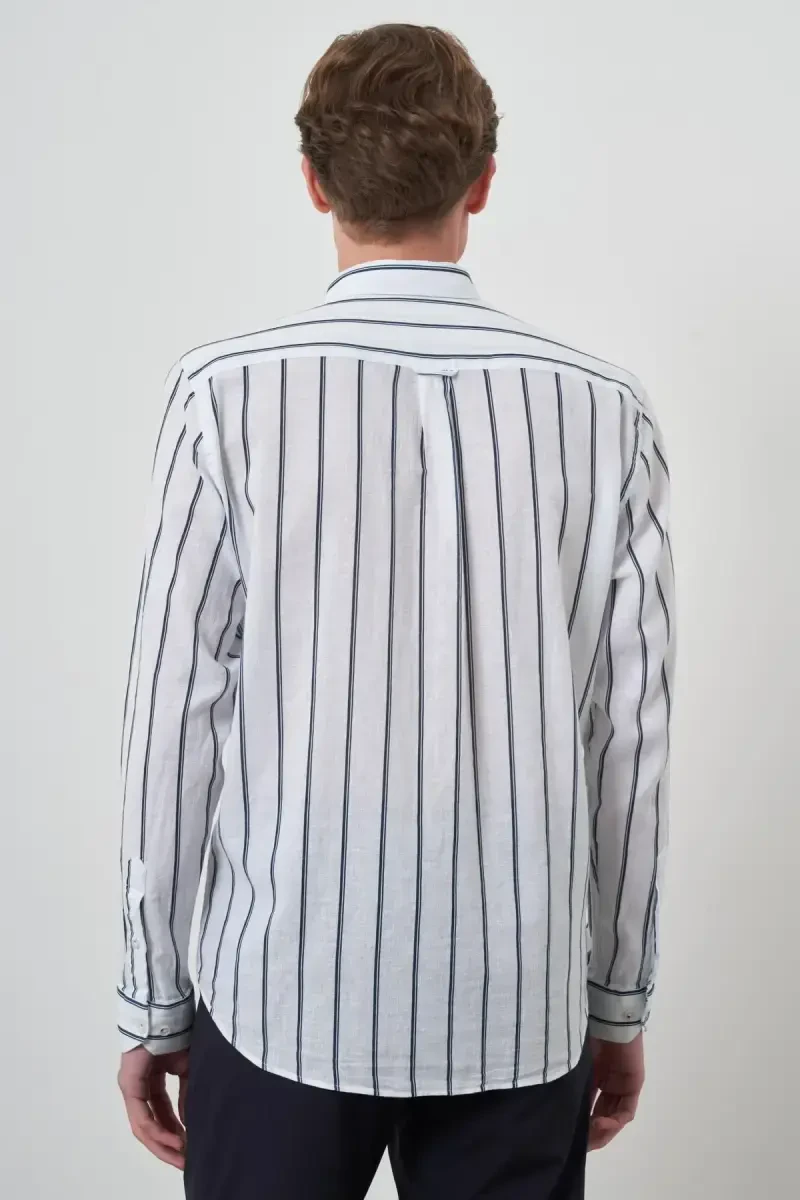 Erkek gömlek, lacivert gömlek, keten gömlek, dynamic fit, düğmeli yaka, moda, erkek giyim, yazlık gömlek, rahat gömlek, slim fit