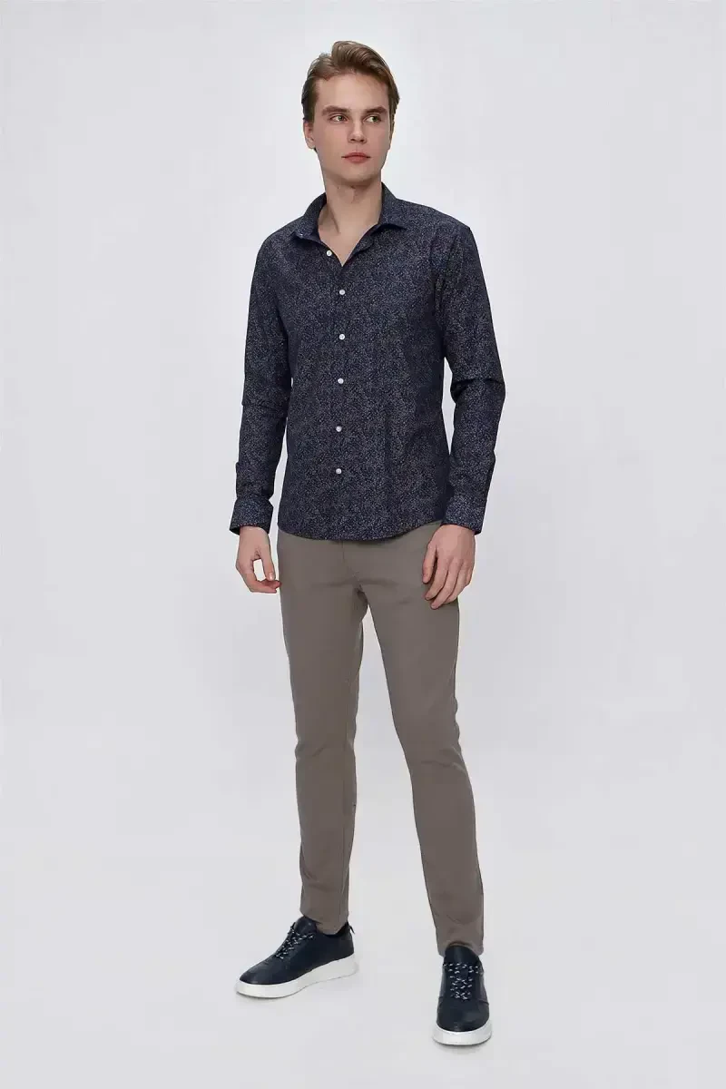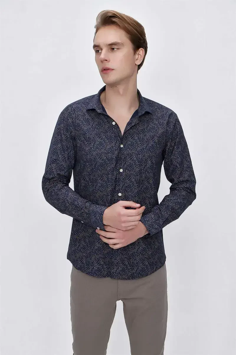 Moda Zevkini Yansıtan Şıklık: Modazone Erkek Lacivert Microcotton Baskılı Slim Fit Gömlek ile Tarzını Konuştur!