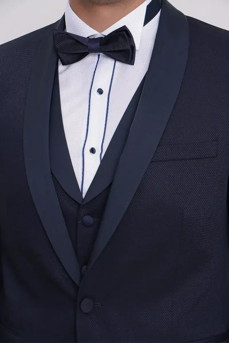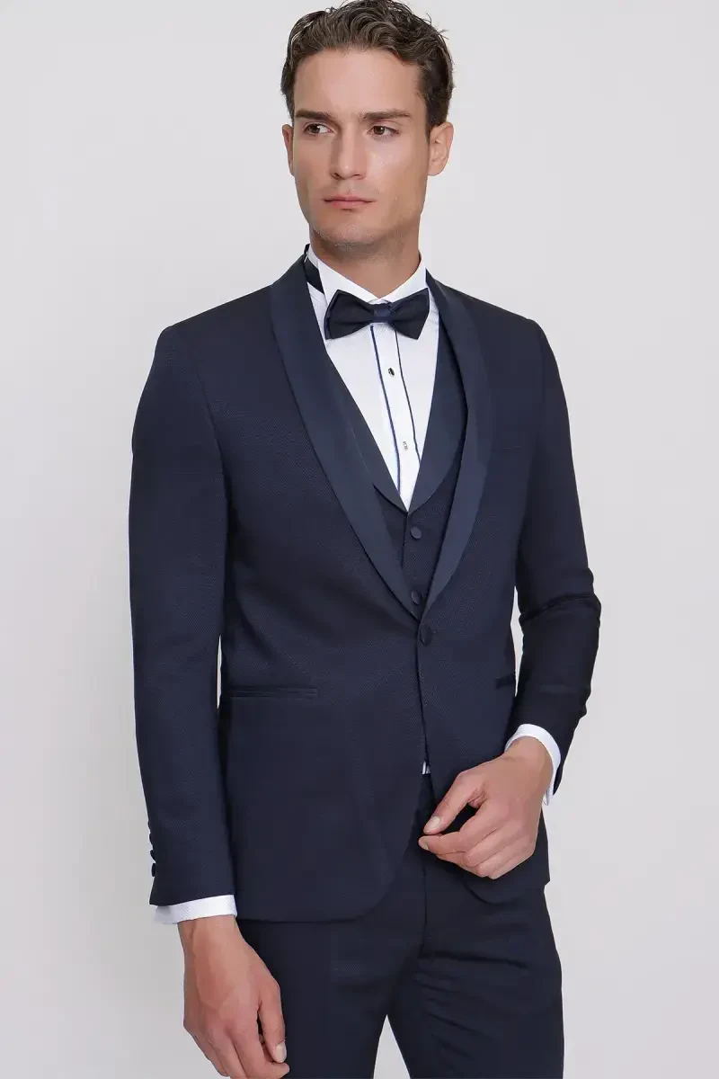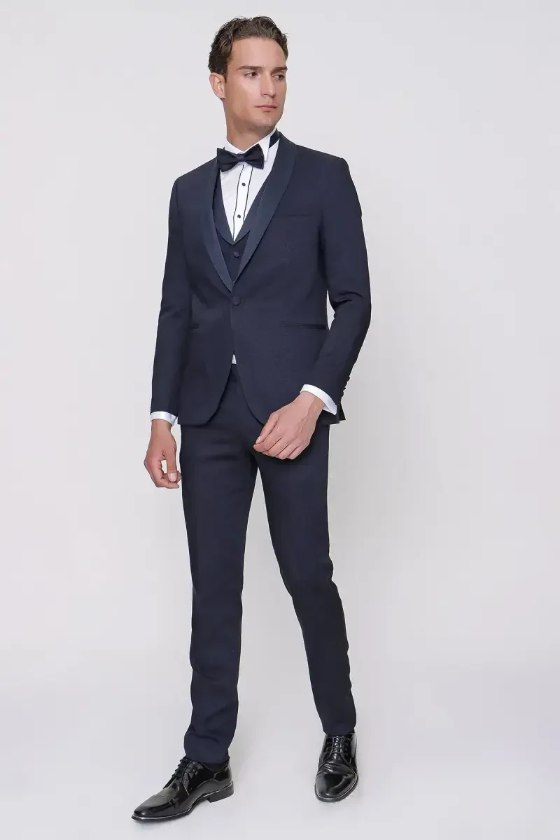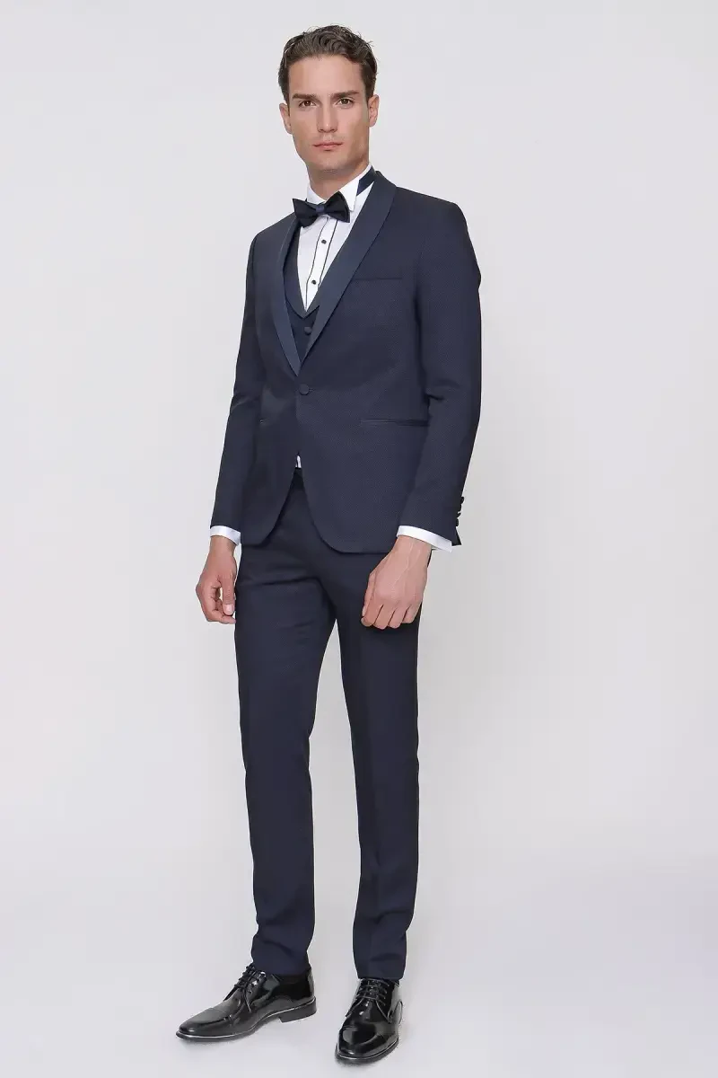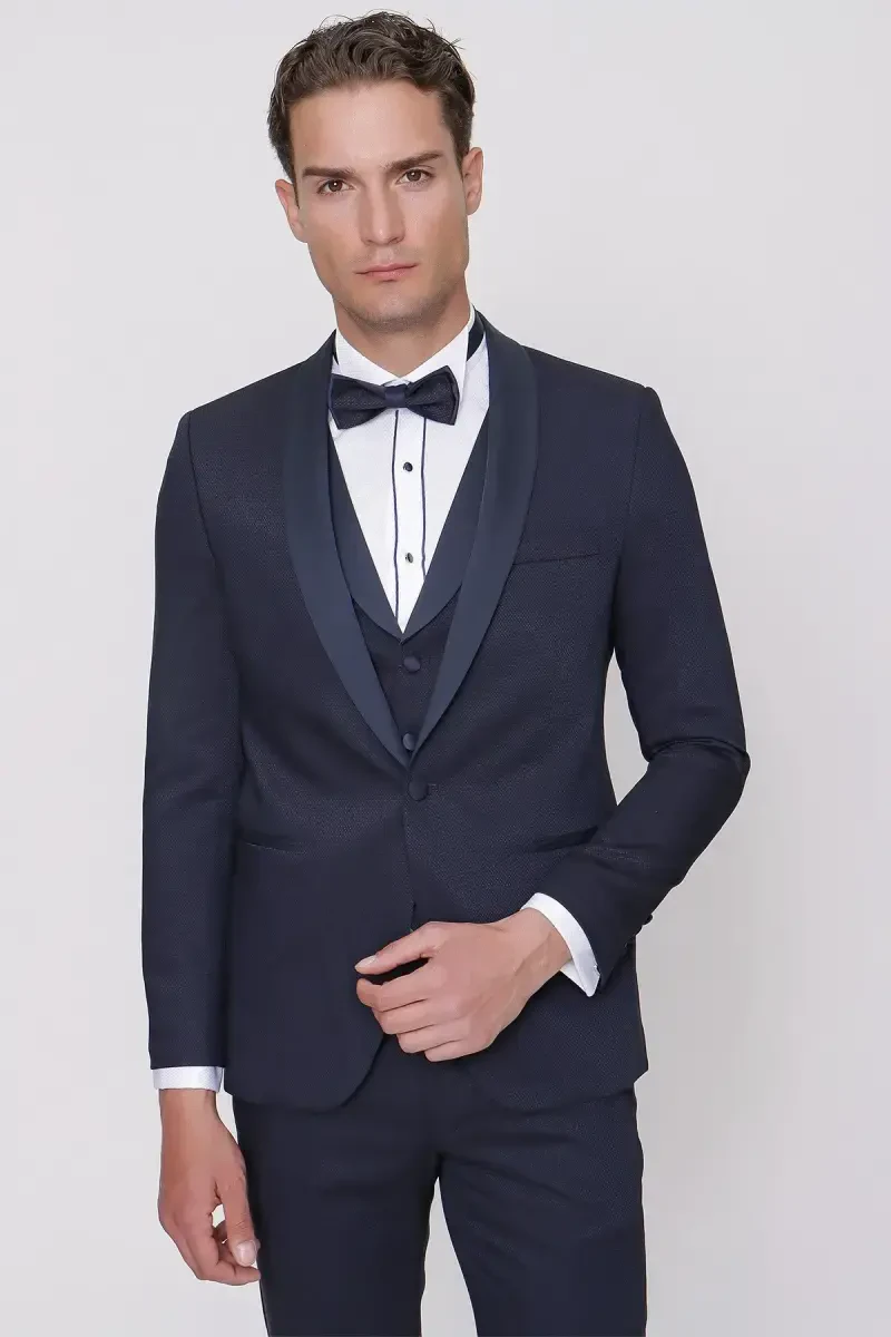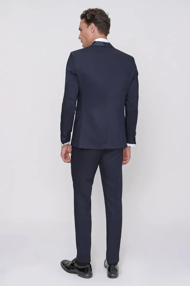 Moda Zône Erkek Lacivert Santorini Ceromonia Damatlık Slim Fit Kruvaze Yaka Düğme Detaylı Cepli Pamuk Karışımlı
