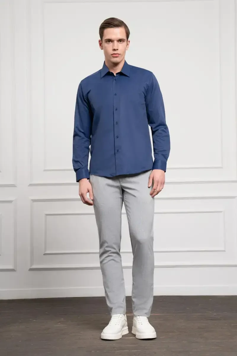 Moda Zonu Erkek Lacivert Slim Fit Dar Kesim Sert Spor Yaka Gömlek, modern erkeğin gardırobunda mutlaka bulunması gereken bir parçadır. Bu gömlek, şıklığı ve konforu bir araya getirerek her ortamda kendinizi iyi hissetmenizi sağlar. Gerek günlük kullanımda, gerekse özel davetlerde stilinizi tamamlayacak bu gömlek, dikkat çekici detaylarıyla öne çıkar.Slim fit kesimi, vücudunuzu saran ve daha fit bir görünüm elde etmenize yardımcı olan modern bir kesimdir. Bu kesim, gömleğin üzerinizde daha şık durmasını sağlar ve hareket özgürlüğünüzü kısıtlamaz. Dar kesim tasarımı, vücut hatlarınızı belirginleştirerek daha dinamik ve genç bir görünüm sunar. Özellikle fit bir vücuda sahip erkekler için ideal olan bu kesim, gün boyu rahat etmenizi sağlar.Sert spor yaka detayı, gömleğe farklı bir hava katarak klasik gömleklerden ayrışmasını sağlar. Bu yaka tipi, daha modern ve sportif bir görünüm sunarken, kravat takma zorunluluğunu ortadan kaldırır. Hem klasik hem de spor kombinlerinizde rahatlıkla kullanabileceğiniz bu yaka, stilinize özgün bir dokunuş katar. Özellikle yakası açık ceketlerle veya blazerlerle kombinlendiğinde oldukça şık bir görünüm elde edebilirsiniz.Lacivert rengi, gömleğin çok yönlü kullanımını destekler. Bu renk, farklı renklerle kolaylıkla kombinlenebilir ve her türlü ortama uyum sağlar. Hem klasik renklerle (beyaz, siyah, gri) hem de daha canlı renklerle (kırmızı, sarı, turuncu) kombinleyerek farklı tarzlar yaratabilirsiniz. Lacivert, aynı zamanda resmiyet ve ciddiyetin rengi olduğu için iş ortamında da rahatlıkla tercih edilebilir.Gömleğin kumaş kalitesi, uzun ömürlü bir kullanım sunar. Yüksek kaliteli pamuklu kumaş, cildinize nefes aldırarak gün boyu terlemeyi önler. Kumaşın dayanıklılığı, sık yıkamalara karşı dirençli olmasını sağlar ve uzun süre ilk günkü görünümünü korur. Dikiş detaylarına gösterilen özen, gömleğin kalitesini artırır ve uzun yıllar boyunca gardırobunuzda yerini korumasını sağlar.Moda Zonu Erkek Lacivert Slim Fit Dar Kesim Sert Spor Yaka Gömlek, sadece şık bir görünüm sunmakla kalmaz, aynı zamanda konforlu bir kullanım da sağlar. Gün boyu rahat hareket etmenizi sağlayan kumaş yapısı ve kesimi, yoğun tempolu günlerinizde size eşlik eder. İster iş toplantısında, ister akşam yemeğinde, isterseniz de günlük aktivitelerinizde bu gömleği giyerek her zaman şık ve bakımlı görünebilirsiniz. Gardırobunuzun vazgeçilmez bir parçası olacak bu gömlek, stilinizi bir üst seviyeye taşıyacak.