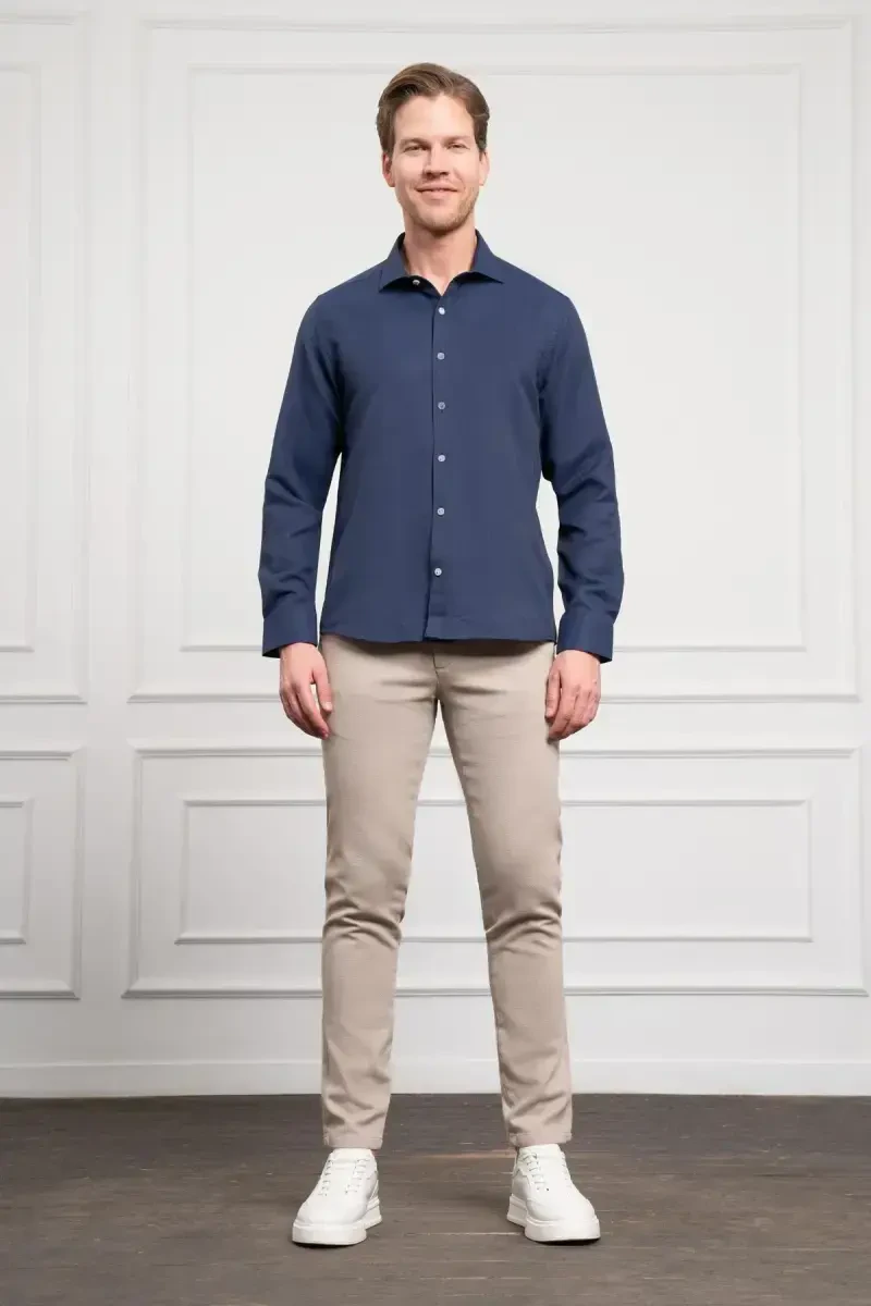 Pamuk Slim Fit İtalyan Yaka Uzun Kol Gömlek
