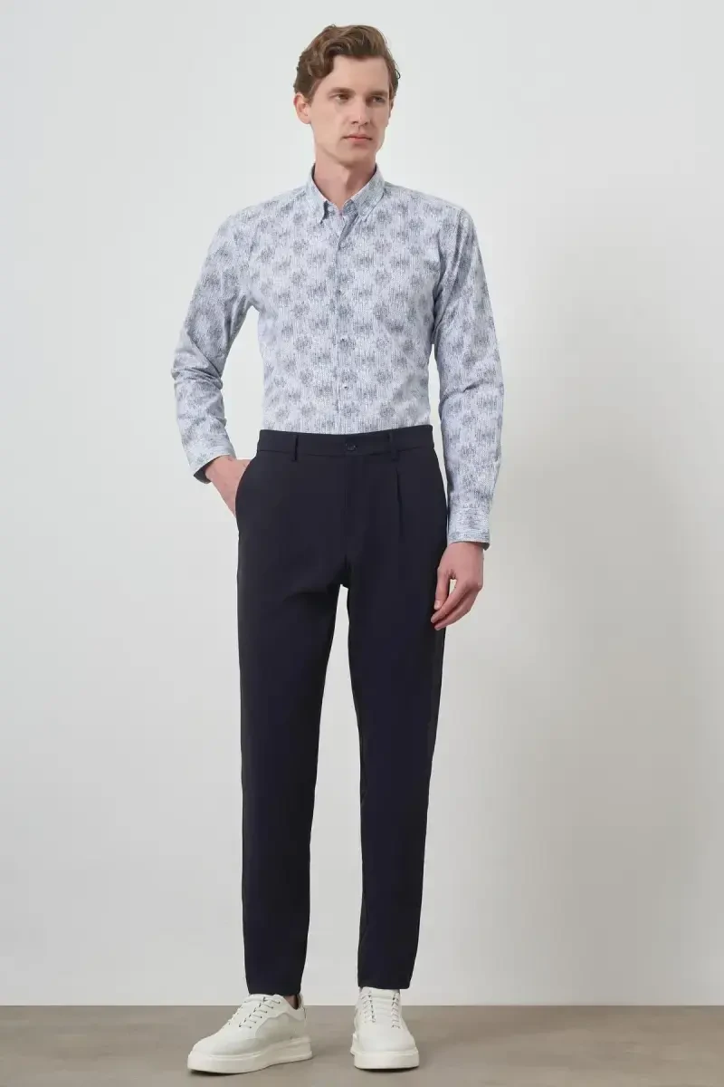 Модный мужской темно-синий трендовый облегающий брюки с полной резинкой Moda Zonu — это дизайн, который сочетает в себе элегантность и комфорт и станет незаменимой вещью в гардеробе современного мужчины. Это идеальный выбор для мужчин, которые хотят выглядеть стильно и не жертвовать своим комфортом в течение всего дня в быстром темпе повседневной жизни. Темно-синий цвет придает классический и неподвластный времени вид, а облегающий крой создает современный силуэт, облегающий тело. Полностью эластичная талия обеспечивает удобство использования в течение всего дня, не ограничивая свободу движений. Эти брюки обеспечивают длительный срок службы благодаря высококачественной ткани. Дышащая структура ткани предотвращает потоотделение и сохраняет кожу свежей в течение всего дня. В то же время, благодаря прочности ткани, ваши брюки сохранят свой первоначальный вид в течение длительного времени. Используете ли вы их в повседневных нарядах или на более особенных мероприятиях, модные мужские темно-синие трендовые облегающие брюки с полной резинкой Moda Zonu всегда подчеркнут ваш стиль. Универсальность брюк позволяет им легко адаптироваться к разным стилям. Вы можете сочетать их с футболкой и кроссовками для повседневного образа или дополнить их рубашкой и классической обувью для более элегантного образа. Вы также можете персонализировать свой стиль с помощью выбора аксессуаров и создать привлекательный стиль в любой среде. Moda Zonu всегда стремится предлагать инновационные и качественные продукты в мужской моде. Эти брюки, как отражение этой цели, являются стильным и удобным вариантом, который отвечает ожиданиям современного мужчины. С этими брюками, которые станут незаменимой частью вашего гардероба, вы всегда сможете отразить свой стиль и чувствовать себя уверенно и комфортно. Поднимите свой стиль на новый уровень и выделитесь из толпы в любой обстановке с модными мужскими темно-синими трендовыми облегающими брюками с полной резинкой Moda Zonu!