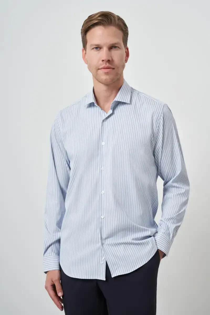 Erkek gömlek, marine gömlek, çizgi desen, slim fit, trend gömlek, moda zonu, yazlık gömlek, rahat gömlek, şık gömlek, erkek giyim