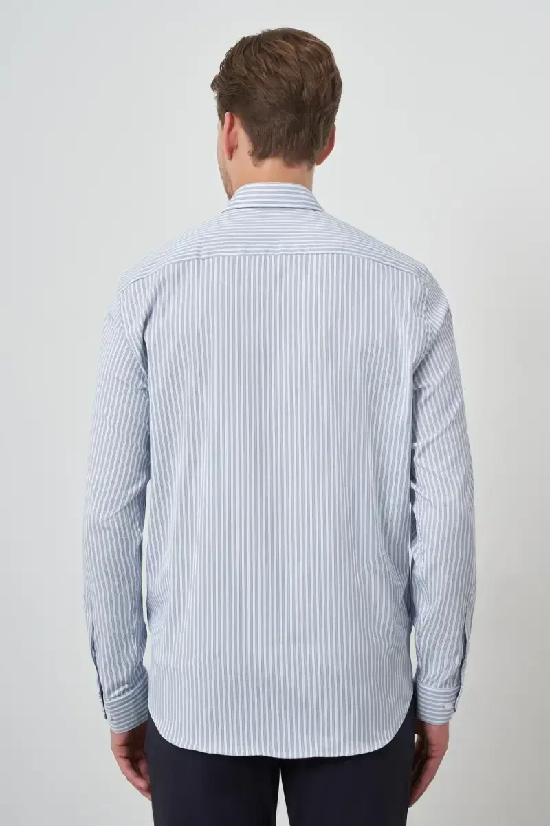 Erkek Denizci Çizgili Dar Kesim Gömlek | Moda Zonu Gömlek