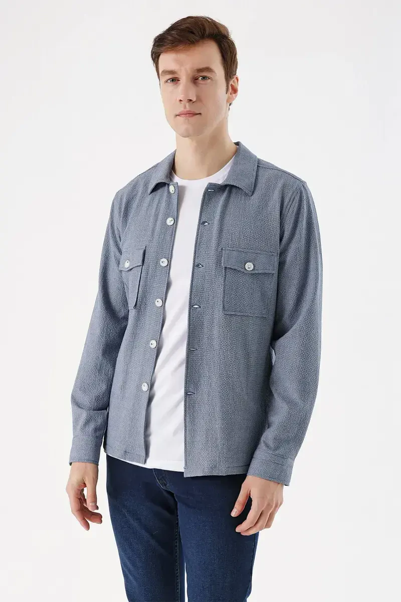 МодаZon Erkek Mavi Worker Mont: Kos Gofre, Dinamik Fit