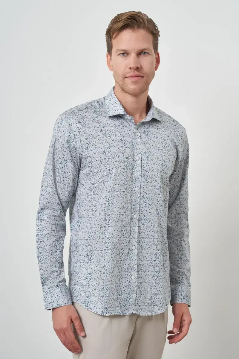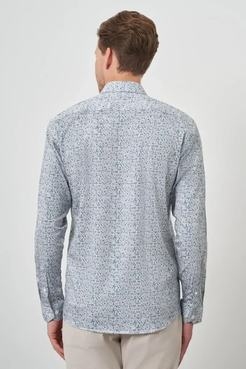 Morven Erkek Mavi Pamuk Trend Slim Fit İtalyan Yaka Gömlek