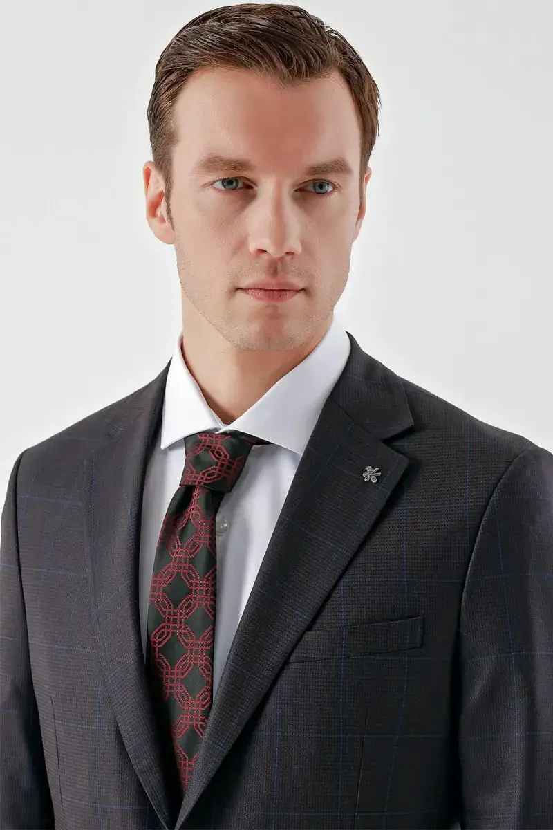 Mürdüm Ekose Slim Fit Takım Elbise | Modazone Erkek Giyim
