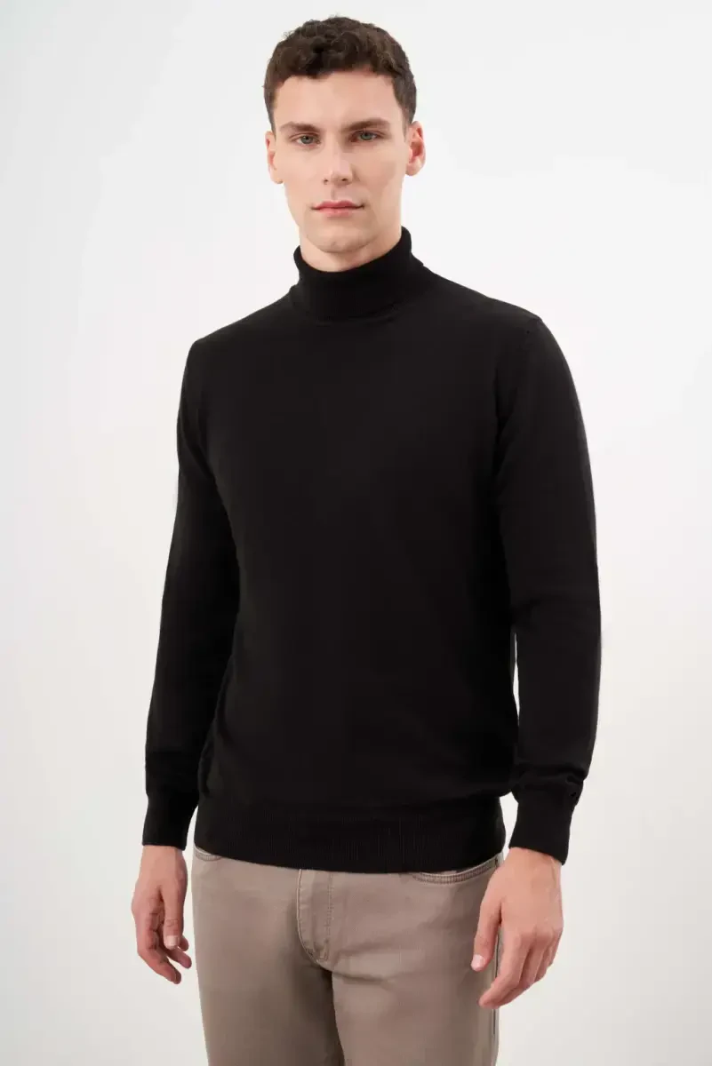 Erkek triko, balıkçı yaka, rahat kesim, pamuklu triko, akrilik triko, siyah triko, uzun kollu, basic triko, dynamic fit, Modazone