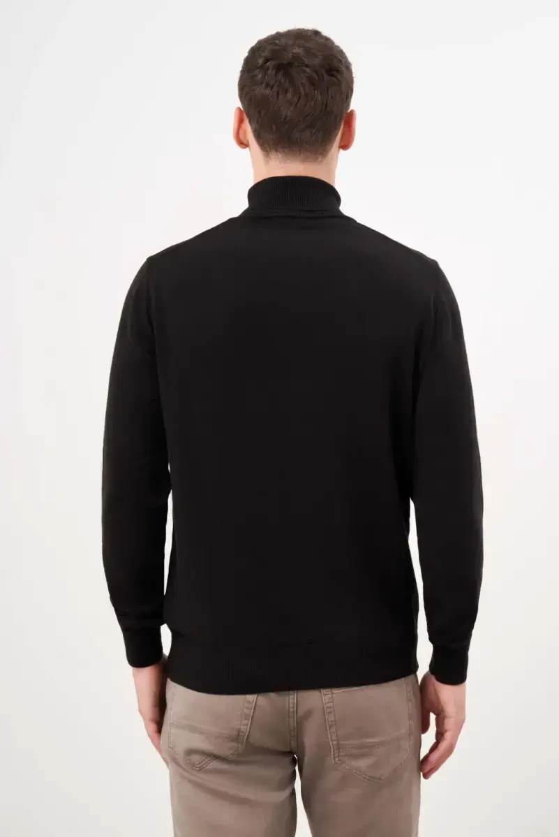 Erkek Siyah Balıkçı Yaka Triko | Rahat Kesim Dynamic Fit
