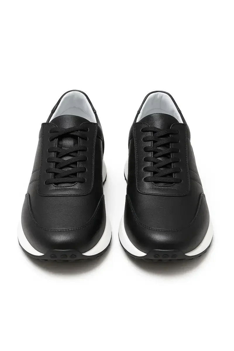 Erkak krossovkasi, qora charm poyabzal, ModaZon, kundalik poyabzal, qulay poyabzal, zamonaviy krossovka, charm krossovka, erkaklar modasi, qora poyabzal, erkaklar poyabzali