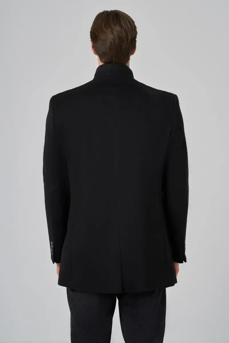 ModaZon Erkek Siyah Desenli Hakim Yaka Dynamic Fit Kaban