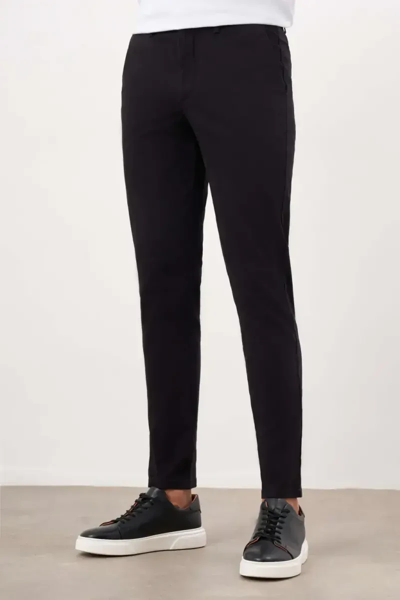 Erkek pantolon, chino pantolon, slim fit, siyah pantolon, pamuklu pantolon, mevsimlik pantolon, yan cepli pantolon, ModaZon, erkek giyim, pantolon