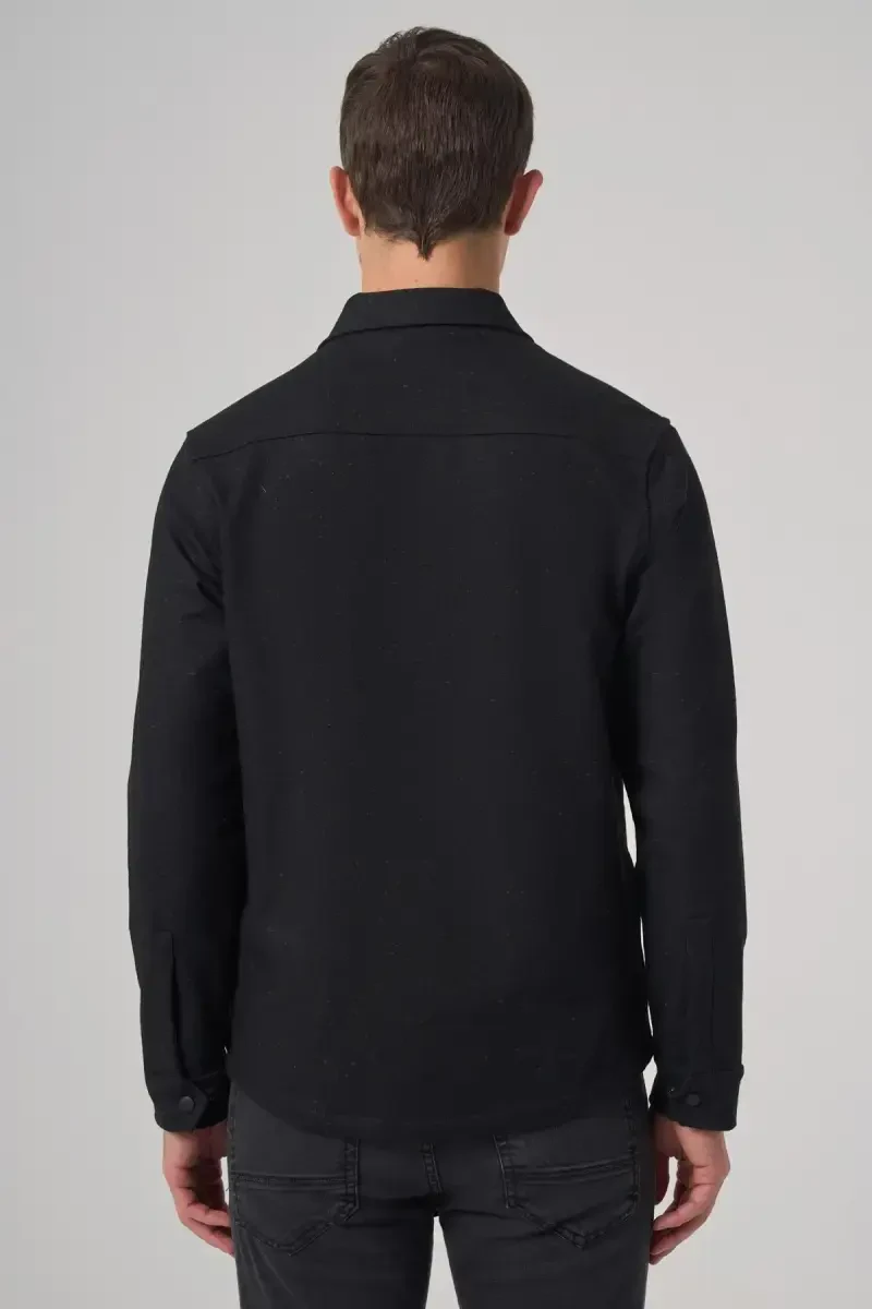 Morven Erkek Siyah Trend Yünlü Dinamik Fit Gömlek Ceket