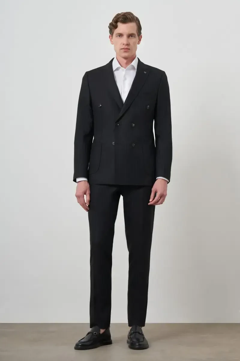 Erkak kostyumi, qora kostyum, ikki tugmali kostyum, slim fit kostyum, trend kostyum, ModaZon, erkaklar kiyimi, maxsus tadbir, ish uchrashuvi, zamonaviy kostyum