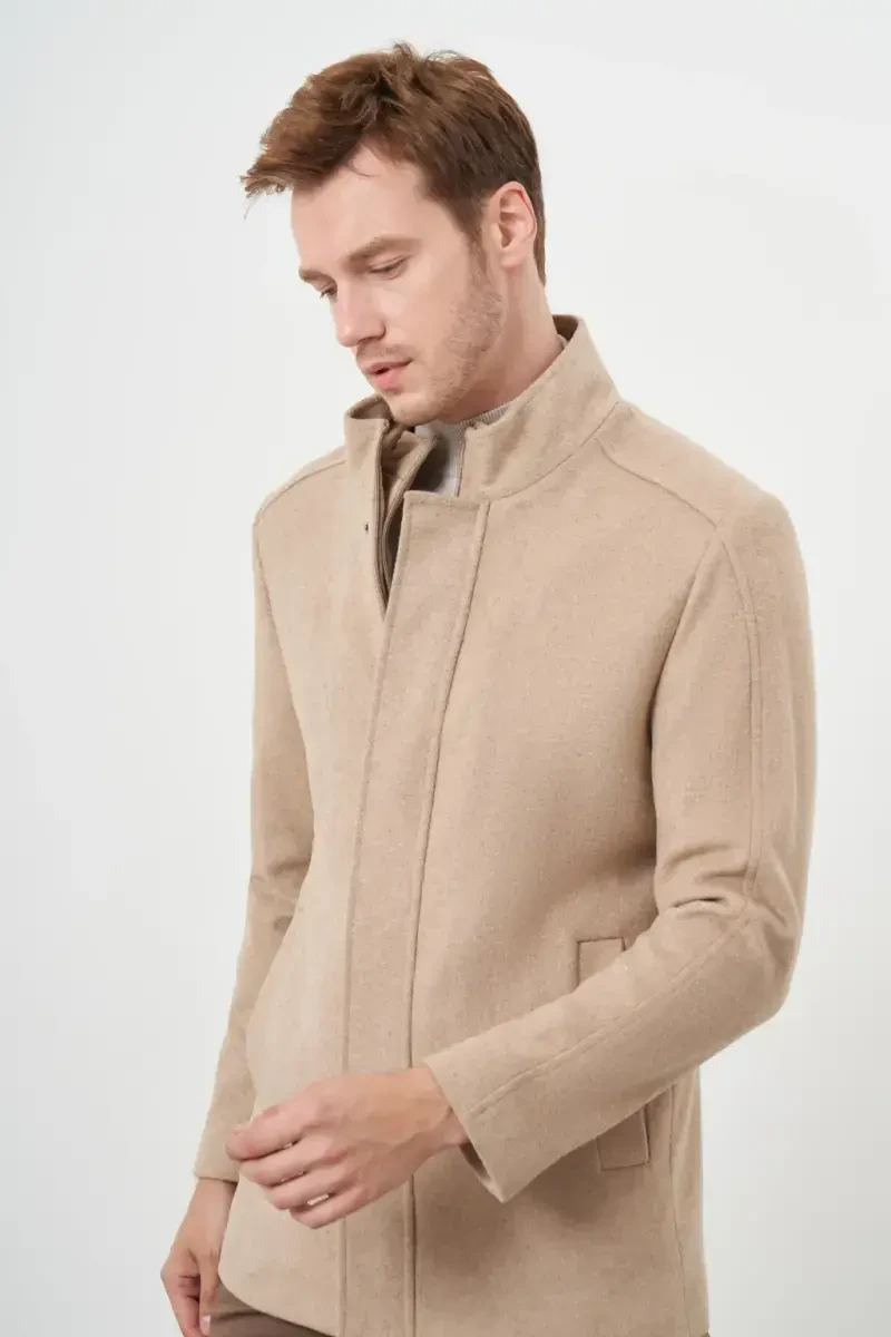 Taş Rengi Yünlü Hakim Yaka Erkek Ceket - Regular Fit