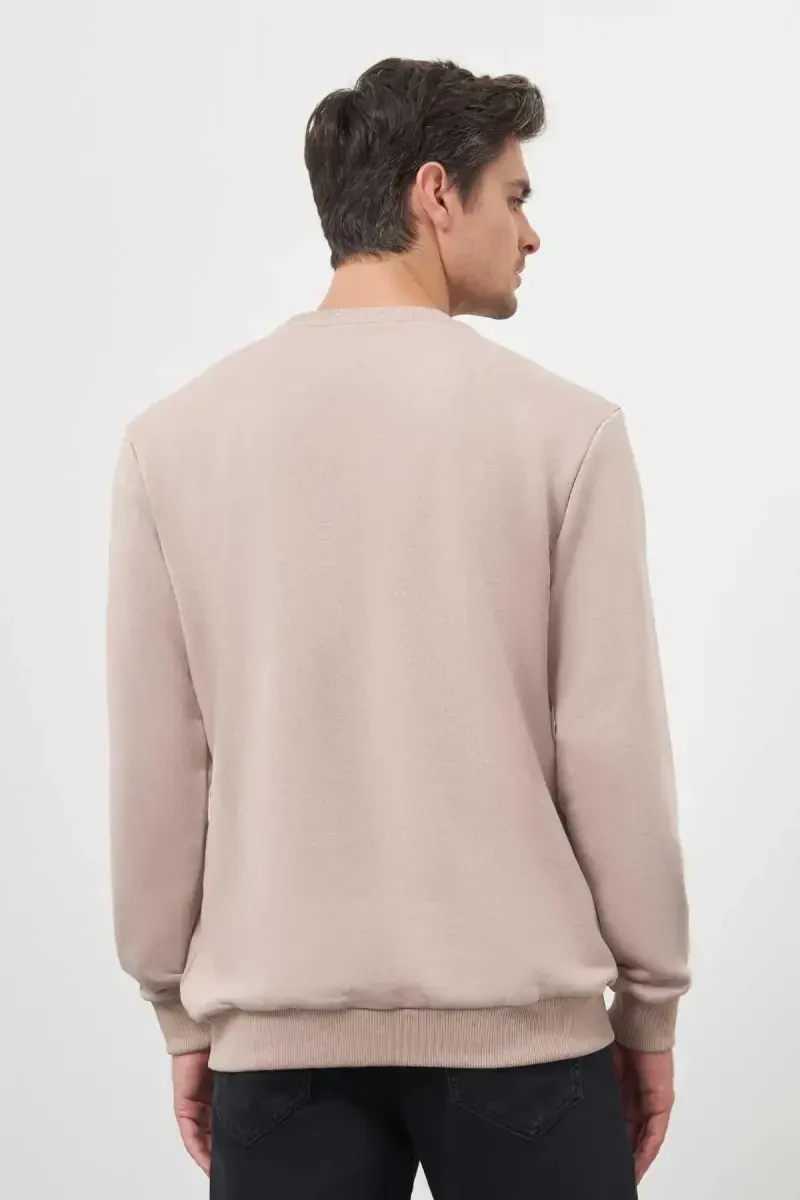 Erkek sweat-shirt, bisiklet yaka, taş rengi, trend, Modazone, pamuklu, rahat, şık, modern, uzun ömürlü