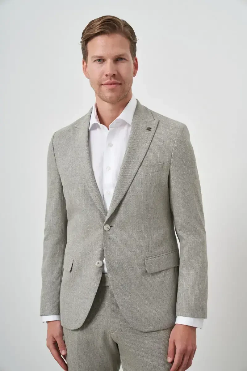 Product size on the model: 48. Model Measurements: Height: 188 cm, Chest: 98 cm, Waist: 75 cm, Hips: 99 cm. Product content: Jacket and Trousers. Please follow the washing instructions on the label for long-lasting use of your product. Colors may vary due to light differences in studio shots.