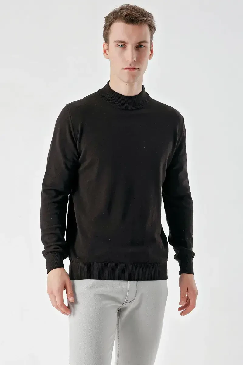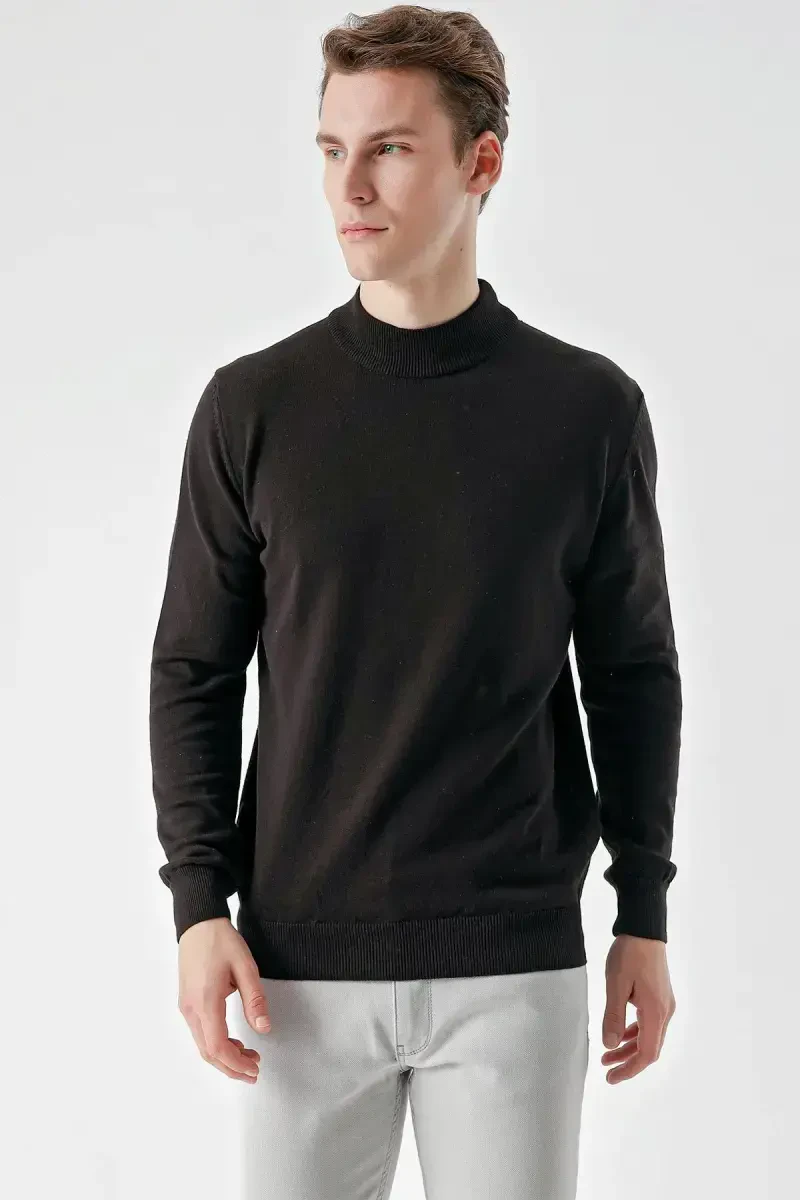Men's knitwear, turtleneck, black knitwear, relaxed fit, dynamic fit, moda zône, men's clothing, knitwear men, basic knitwear, winter knitwear
