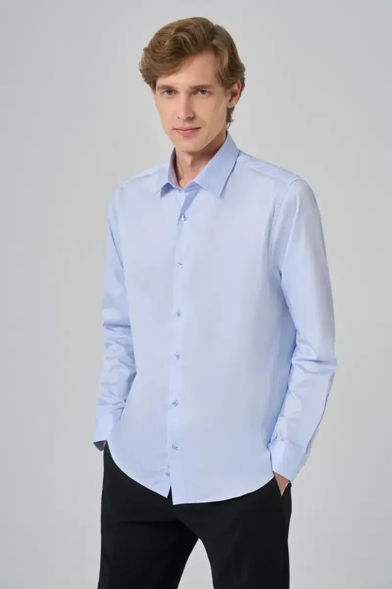 Men's shirt, dynamic fit, stiff collar, long sleeve, cotton polyester, blue shirt, modazone, stylish shirt, comfortable shirt, men's fashion