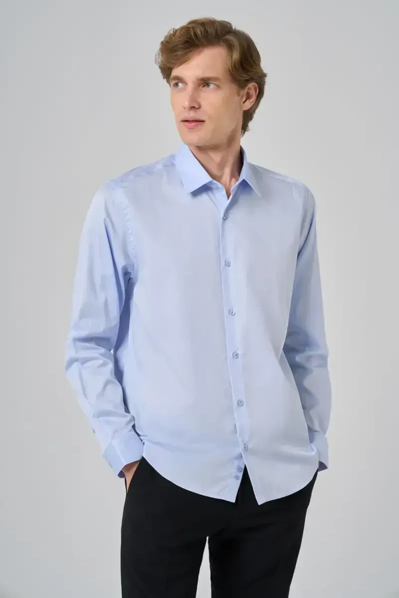 60% Cotton 40% Polyester. Dynamic Fit. Stiff Collar. Long Sleeve.Product DescriptionCombine your style and comfort with the Modazone Men's A. BLUE Dynamic Fit Stiff Collar Shirt. This shirt, which will complement your casual elegance, will become an indispensable part of your wardrobe thanks to its special design and high-quality fabric. The Dynamic Fit cut fits your body perfectly and does not restrict your freedom of movement, while the stiff collar offers a well-groomed and stylish look at all times. Whether you make a sporty combination with jeans or capture a more formal style with classic trousers, this shirt adapts to any environment. The vibrancy of the blue color reflects your energy, while the long sleeves allow you to use it comfortably in cool weather. With its all-day comfort and stylish look, the Modazone shirt is an indispensable part of men's fashion. Thanks to the breathable structure of its fabric, it minimizes the problem of sweating, so you stay fresh all day long. This shirt, which will accompany you from business meetings to special invitations, from weekend trips to daily use, is a candidate to be the choice of stylish men. Produced with Modazone quality, this shirt is carefully designed for long-lasting use. Thanks to its high-quality stitching and durable fabric, it remains like the first day for many years. This shirt, which will be one of the basic pieces of your wardrobe, is the most stylish and practical way to reflect your style. Now reveal your difference with the Modazone Men's A. BLUE Dynamic Fit Stiff Collar Shirt and attract attention in every environment.Product Features* 60% Cotton 40% Polyester blend fabric* Dynamic Fit cut* Stiff collar* Long sleeve* Stylish and modern designAdditional InformationFollow the washing instructions on the label for the long life of the product. It is recommended to use colored detergent and wash with similar colors. There may be slight differences in the color of the product due to screen settings.