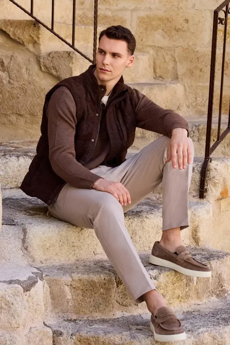 Modazone Men's Coffee Trendy Wool Dynamic Fit Padded Vest is an ideal choice for men who want to look stylish and stay warm in cold weather. The outer surface made of high-quality wool blend gives your skin a pleasant feeling with its soft texture, while the inner filling provides superior heat insulation. The dynamic fit cut fits your body perfectly, does not restrict your freedom of movement and creates a modern silhouette. Coffee color is a classic and timeless option and can be easily combined with your clothes in different colors and styles. This vest, which will accompany you both in daily use and in your special activities, will be one of the indispensable pieces of your wardrobe. The practical pockets of the vest allow you to safely carry your phone, wallet or keys. The zippered front closure allows you to put it on and take it off easily, while the details on the collar add a different touch to the vest. This vest, produced with Modazone quality, is made of durable materials for long-lasting use. This vest, which is an excellent option for layering in cold weather, can be worn over a shirt, sweater or t-shirt. You can also wear it under a coat or jacket to provide extra warmth. Combining elegance and comfort, the Modazone Men's Coffee Trendy Wool Dynamic Fit Padded Vest is a piece that will complement every man's style. It can be easily preferred both in daily use and on special occasions. This vest, which is the choice of stylish men, allows you to stay warm without sacrificing your style in cold weather. This vest, which will be indispensable in winter months, both keeps you warm and allows you to look stylish. This piece, which should definitely be in your wardrobe, always offers you a good look. Enjoy being both comfortable and stylish in cold weather with the Modazone Men's Coffee Trendy Wool Dynamic Fit Padded Vest. This vest is not just a piece of clothing, but also an expression of lifestyle. Choose this vest to feel special and reflect your style.