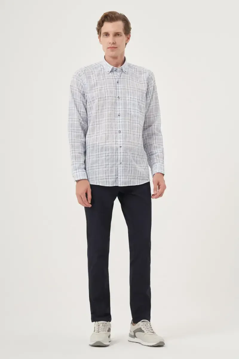ModaZon Men's Navy Blue Linen Trend Regular Fit Button-Down Collar Shirt is a design that combines elegance and comfort, making it a candidate to be an indispensable part of your wardrobe. The natural texture of linen and the noble stance of navy blue make this shirt an ideal option for both daily use and special moments. Thanks to its regular fit, this shirt, which fits the body but does not restrict your freedom of movement, offers comfort all day long. The button-down collar provides a classic look while allowing for use with different combinations. You can reflect your style by combining it alone or with a jacket or knitwear.**Product Description**ModaZon Men's Navy Blue Linen Trend Regular Fit Button-Down Collar Shirt is designed to add elegance and comfort to the modern man's wardrobe. This shirt offers a cool and comfortable wearing experience even in hot weather thanks to its high-quality linen fabric. The natural breathability of linen minimizes sweating and keeps you fresh all day long. The timeless elegance of navy blue adapts to all kinds of environments, while the regular fit sits nicely on the body and does not restrict your freedom of movement. The button-down collar detail adds a classic touch to the shirt and allows you to make different combinations. You can reveal your style by combining it with daily jeans or stylish chino pants. This shirt, which you can easily prefer in the office, meetings, special invitations or weekend trips, will be one of the most used pieces of your wardrobe. This shirt, produced with ModaZon quality, offers long-lasting use and can be easily ironed. The natural wrinkle of the linen fabric adds a unique touch to the shirt and completes your style. This shirt is not just a piece of clothing, but also an expression that reflects your style and personality. Always feel stylish and comfortable with ModaZon Men's Navy Blue Linen Trend Regular Fit Button-Down Collar Shirt. The navy blue color of the product can be easily combined with different colors. You can achieve a classic look by matching it with neutral colors such as white, beige, and gray. For a bolder style, you can combine it with vibrant colors such as burgundy, mustard yellow or green. The buttoned collar detail of the shirt also allows the use of a tie or bow tie. You can create a more formal look by combining it with a tie for a special invitation or meeting. For a relaxed weekend style, you can leave the collar open for a more sporty look. ModaZon is a brand that combines quality and elegance in men's clothing. This shirt is also produced with ModaZon's careful workmanship and quality material selection. The seams, buttons and other details of the shirt are specially designed for long-lasting use. The product is also very easy to care for. It is machine washable and easily ironed. In this way, it ensures that you always look well-groomed and stylish. ModaZon Men's Navy Blue Linen Trend Regular Fit Button-Down Collar Shirt will be indispensable for stylish men. It is an ideal choice for those who want to be both stylish and comfortable. By adding this shirt to your wardrobe, you can always be stylish and confident.**Product Features*** Fabric: Linen* Color: Navy Blue* Fit: Regular Fit* Collar: Button-Down Collar* Usage: Daily and Special Occasions* Breathable Fabric* Easy Ironing* Long-Lasting Use* Stylish and Comfortable Design**Additional Information**Model Measurements: Height: 1.85 cm, Chest: 98 cm, Waist: 80 cm. Model wearing size: M. Follow the washing instructions for long-lasting use of the product. Do not use bleach in colored products. Iron at low temperature.