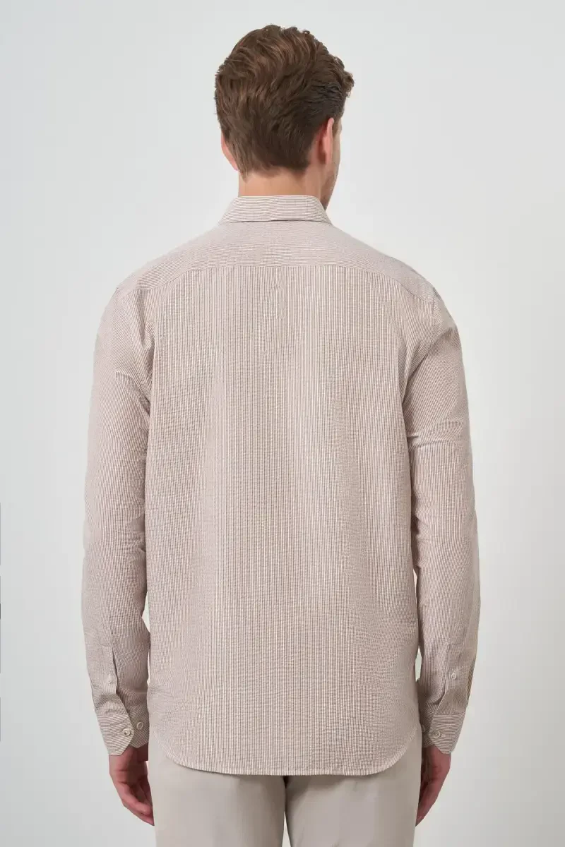 ModaZon Men's Beige Cotton Trend Dynamic Fit Button-Down Collar Shirt is a candidate to be the indispensable part of your wardrobe! This shirt perfectly meets the desire of the modern man to be stylish and comfortable. This shirt, which will highlight your elegance both in business life and in daily activities, offers a breathable experience all day long thanks to its high-quality cotton fabric. The dynamic fit cut allows you to achieve a fit look by gently following the lines of your body. In this way, you can move comfortably and not compromise on your stylish appearance. The button-down collar detail adds a sophisticated touch to the shirt, while the beige color easily matches with all kinds of combinations. Whether you combine it with classic trousers or casual jeans, you will always have a stylish stance. This shirt, produced with ModaZon quality, is carefully designed for long-lasting use. Thanks to the durability of the fabric, it retains its elegance like the first day for a long time. Stitching details and button quality also increase the overall quality of the shirt. This shirt is not just a piece of clothing, but also an expression of a lifestyle. Make a difference in every environment with the ModaZon Men's Beige Cotton Trend Dynamic Fit Button-Down Collar Shirt, which is the choice of self-caring and stylish men. This shirt, which will accompany you from meetings in the office to dinner, will be one of the most loved pieces of your wardrobe. The warmth of the beige color and the modern cut of the shirt give you a confident and charismatic look. The light texture in the fabric of the shirt provides comfort all day long by harmonizing with your skin. In addition, you save time thanks to the easy-ironing feature of the shirt. It is an ideal choice for men who always want to look well-groomed and stylish. ModaZon, as a brand that determines trends in men's fashion, has paid attention to the finest details while designing this shirt. Button details on the collar of the shirt, elegant stitching on the cuffs and the quality of the fabric reflect ModaZon's understanding of quality. This shirt can be considered not only as a piece of clothing but also as an investment. It will be in your wardrobe for many years and will always complement your style. Let your style speak with the ModaZon Men's Beige Cotton Trend Dynamic Fit Button-Down Collar Shirt and attract attention in every environment. Remember, style is hidden in the details and this shirt offers you a perfect style.