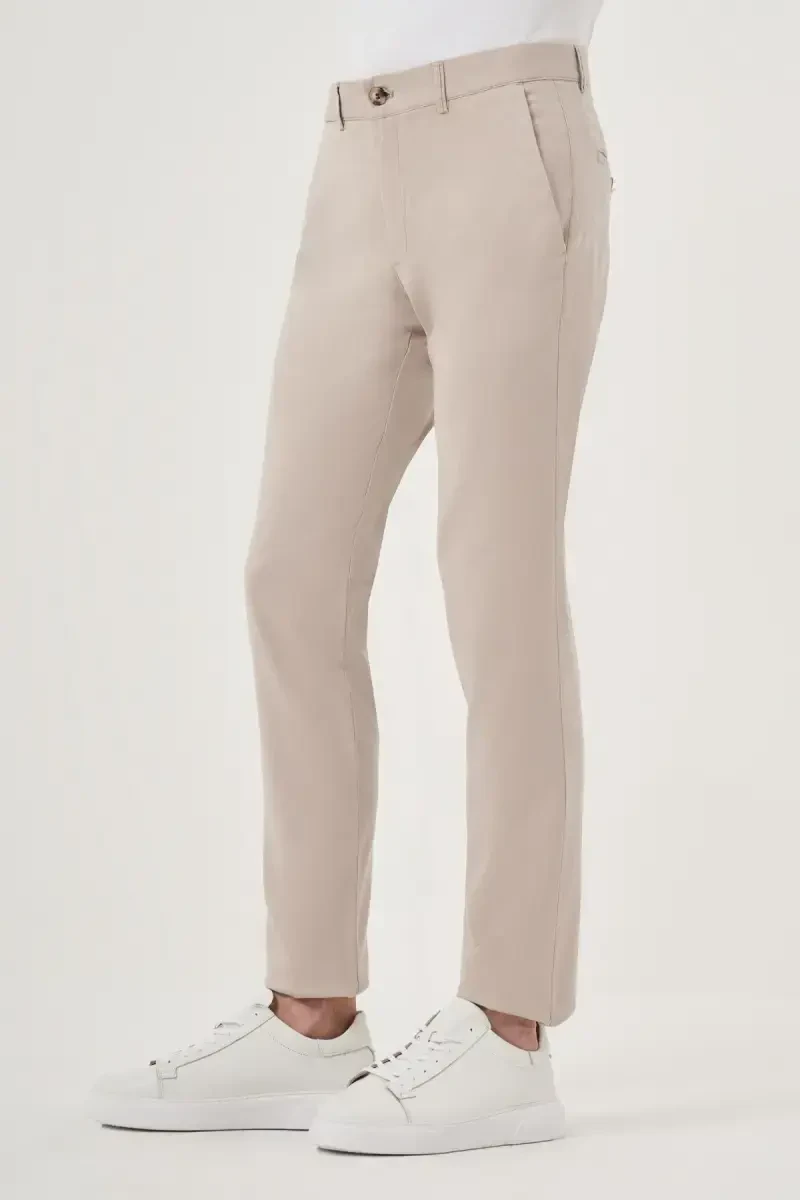 Moda Zône Men's Beige Summer Cotton Side Pocket Slim Fit Chino Pants are a candidate to be the favorite piece of stylish men in summer. Offering comfort and elegance together in hot weather, these pants breathe with your skin with their 100% cotton texture and provide a comfortable use experience all day long. The slim fit cut gives the body a modern and elegant look, while the beige color makes it easy to combine with different colors and patterns of outerwear. The side pockets of the trousers create both an aesthetic detail and offer practical use. These pockets, where you can safely carry items such as your phone, wallet or keys, increase the functionality of the trousers. Ideal for daily use, these chino pants allow you to achieve a comfortable and stylish look when combined with a t-shirt and sneakers, while you can have a more formal look when combined with a shirt and loafer shoes. These pants, produced with Moda Zône quality, offer long-lasting use with their durable structure. The care in the seam details and the quality of the materials used increase both the appearance and the wearing comfort of the trousers. These chino pants, which will be one of the must-haves of your summer wardrobe, are the easiest way to reflect your style and look stylish in any environment. Whether it's a weekend getaway or your daily activities in the city, always feel stylish and comfortable with Moda Zône Men's Beige Summer Cotton Side Pocket Slim Fit Chino Pants. The timeless elegance of the beige color makes these pants wearable in any environment. Whether you are at the office, meeting friends or at a special event, you will always make the right choice with these pants. The slim fit cut creates a silhouette that hugs your body and reveals your lines, while the breathable structure of the cotton fabric eliminates the problem of sweating. This way, you can feel comfortable and cool all day long, even on hot summer days. Moda Zône is known for its designs that shape men's fashion, and these chino pants reflect the brand's quality and style understanding. Combining elegance and comfort, these pants are a candidate to be one of the most loved pieces in your wardrobe. Choose Moda Zône Men's Beige Summer Cotton Side Pocket Slim Fit Chino Pants to reflect your style and always look stylish.