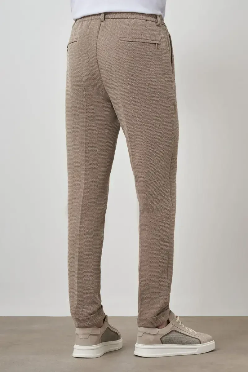 ModaZon Men's Beige Trend Slim Fit Drawstring Jogger Pants are a versatile and stylish piece that should be in every modern man's wardrobe. Combining the comfort and style of everyday wear, these jogger pants allow you to move freely both in sports activities and in city life. The slim fit cut creates a modern silhouette with its body-hugging structure, while the drawstring design allows you to adjust your waist as you wish. The beige color allows you to create different styles by adapting to all kinds of combinations.**Product Description**ModaZon Men's Beige Trend Slim Fit Drawstring Jogger Pants are an ideal choice for stylish men who want to feel comfortable without sacrificing their elegance. Thanks to its high-quality fabric, it offers comfort all day long and does not restrict your freedom of movement. You can adapt to different environments by combining it with a sporty t-shirt or a stylish shirt. The timeless elegance of the beige color makes it a piece that you can use in every season and in every environment. The slim fit cut reveals your body lines and gives you a modern and dynamic look. The drawstring waist detail ensures that the pants fit perfectly on your waist, increasing your comfort. Thanks to its side pockets, you can safely carry your personal belongings such as phone and keys. Produced with ModaZon quality, these jogger pants offer long-lasting use and do not wear out easily. These pants, which will be an indispensable part of your wardrobe, will accompany you both in your daily activities and in your special moments. These jogger pants, which offer style and comfort together, are an excellent option to reflect your style. Always feel stylish and comfortable with ModaZon Men's Beige Trend Slim Fit Drawstring Jogger Pants.**Product Features*** Slim fit* Drawstring waist adjustment* Beige color* High quality fabric* Comfortable and stylish design* Suitable for daily use* Side pockets* Provides freedom of movement* Compatible with different combinations* Long-lasting use**Additional Information**It is recommended to wash the product in accordance with the care instructions. Avoid using bleach. Iron at low temperature. Body information on the model: M size. Product content: 98% Cotton, 2% Elastane.