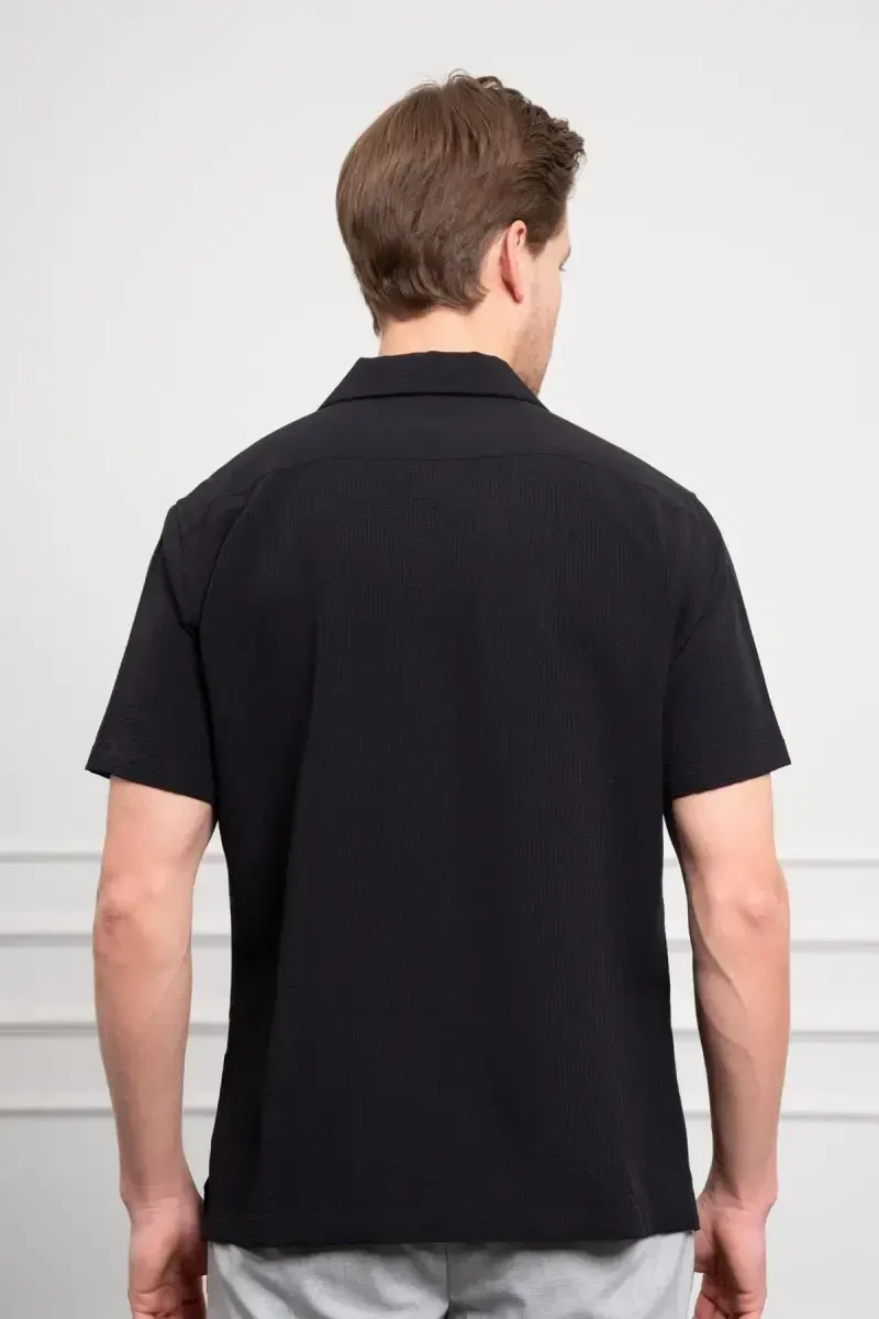 100% Cotton Poplin, Apache Collar, Slim Fit, Short Sleeve, Buttoned, Summer.