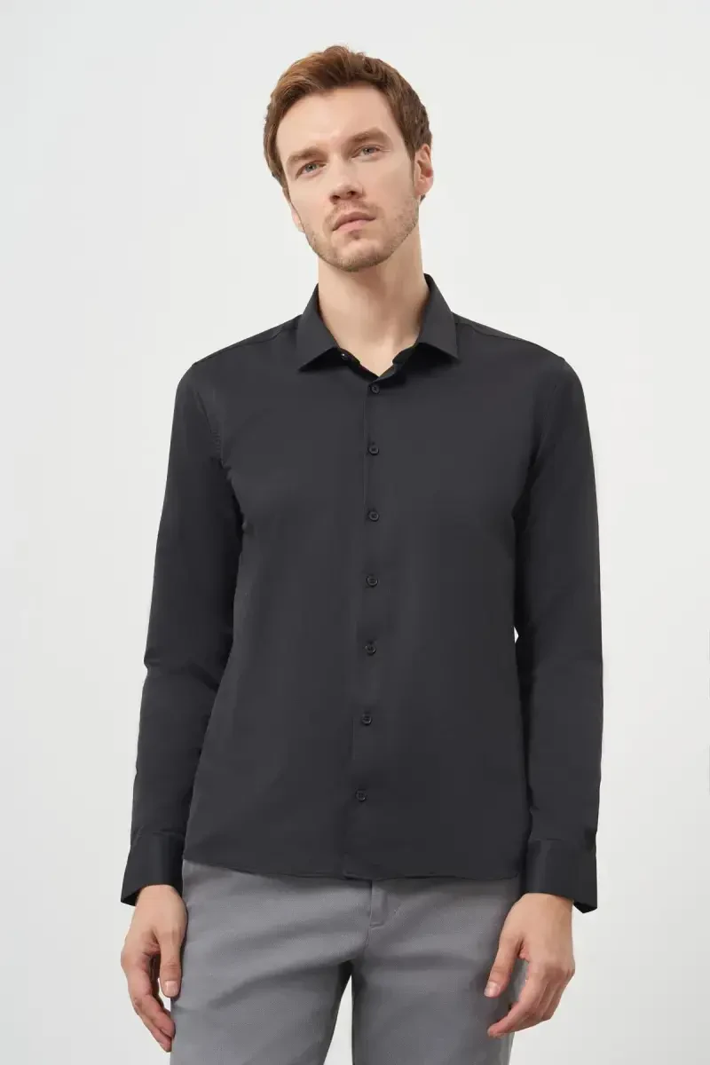 Men's shirt, slim fit, Italian collar, black shirt, cotton shirt, Modazone, stylish shirt, comfortable shirt, classic shirt, men's clothing