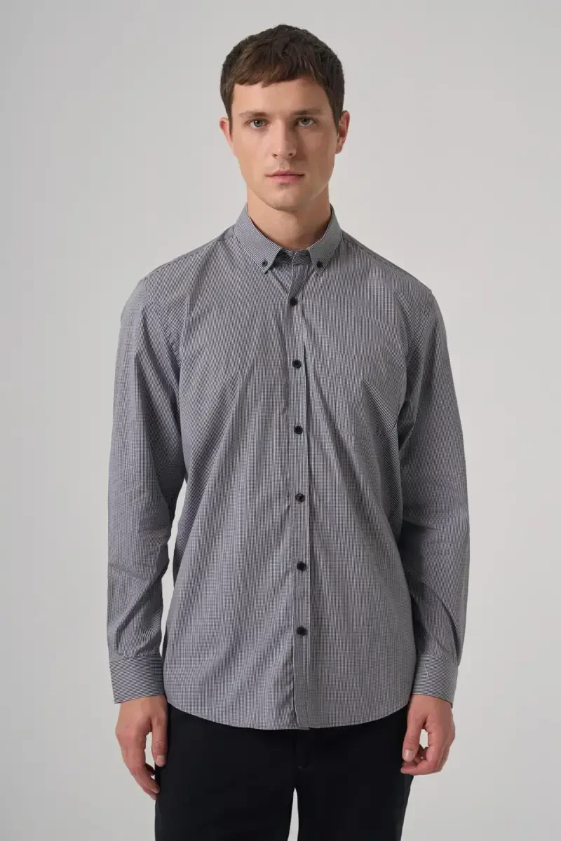 Men's shirt, black shirt, cotton shirt, checkered shirt, regular fit, button-down collar, trendy shirt, Modazone, stylish shirt, comfortable shirt