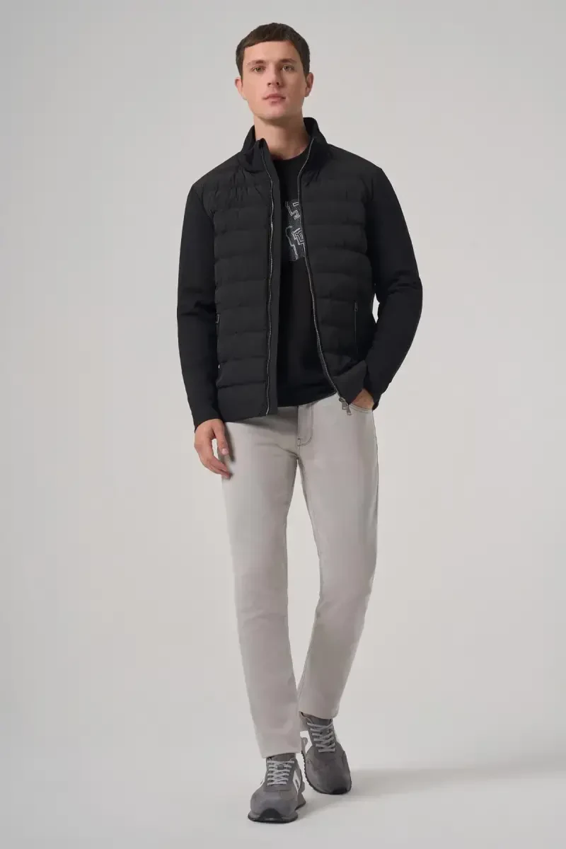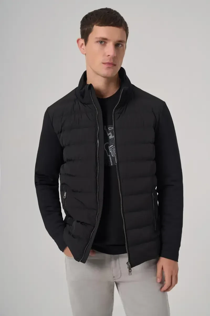ModaZon Men's Black Polyamide Short Quilted Jacket is a modern option that combines elegance and functionality. It stands out with its waterproof fabric, quilted filling that keeps you warm in cold weather, and useful pockets. It is ideal for daily use.