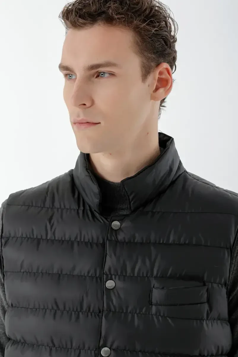 Men's vest, quilted vest, black vest, polyester vest, snap-button vest, ModaZon vest, outdoor vest, winter vest, sleeveless vest, men's clothing