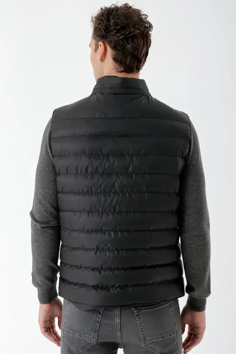 ModaZon Men's Black Polyester Snap-Button Quilted Vest is an ideal option to keep you warm and protect your style in cold weather. Made with high-quality polyester material and meticulous workmanship, this vest offers long-lasting use. The quilted pattern adds a modern and dynamic look to the vest, while the snap-button closure system provides ease of use. You can easily choose this vest for daily wear or outdoor activities, and it will be an indispensable part of your wardrobe.Product DescriptionModaZon Men's Black Polyester Snap-Button Quilted Vest is a special design that allows stylish men to protect themselves from the cold without sacrificing their elegance, while also offering comfort. This vest is made using high-quality polyester material, making it both lightweight and durable. In addition to daily use, you can easily use this vest in your outdoor activities such as hiking and camping, and it keeps your body temperature balanced and prevents you from getting cold. The quilted pattern adds a modern and sophisticated look to the vest, while the black color is compatible with any combination. The snap-button closure system allows you to easily put on and take off the vest, while also standing out as a stylish detail. The inner filling of the vest is made of a special material that will keep you warm in cold weather. In this way, you will feel an instant warmth when you wear the vest. Its high collar protects your neck from the cold, while its sleeveless design does not restrict your freedom of movement. With these features, the ModaZon Men's Black Polyester Snap-Button Quilted Vest is an excellent choice for men who lead an active life both in the city and in nature. This vest, which you can easily combine with other pieces in your wardrobe, helps you reflect your style and attract attention in any environment. This vest, produced with ModaZon quality, is a durable and stylish investment that you will enjoy using for many years. The seams of the vest are carefully made and resistant to any deformation. In addition, thanks to the lightweight structure of the vest, it does not weigh you down and allows you to be comfortable all day long. The high-quality material on the inner and outer surfaces minimizes the problem of sweating and helps you stay dry and comfortable throughout the day. ModaZon Men's Black Polyester Snap-Button Quilted Vest is an ideal choice for men looking for both a functional and stylish option. With this vest, you can stay warm and comfortable without sacrificing your style even in cold weather. Moreover, thanks to the easy-to-clean feature of the vest, you can ensure that it stays as new as the first day for a long time. ModaZon is known for its designs that shape men's fashion, and this vest is a product that reflects the brand's quality and elegance. You can easily combine this vest, which will not only protect you from the cold but also complement your style, with your jeans, trousers or tracksuits. Whether you want to achieve a sporty look or create a more stylish style, ModaZon Men's Black Polyester Snap-Button Quilted Vest will always accompany you. When you wear this vest, you will both stay warm and make a difference with your style.Product Features* High-quality polyester material* Snap-button closure system* Modern design with quilted pattern* Lightweight and comfortable to use* Effective protection against cold weather* Stylish black color* Sleeveless design* High collar* Easy to clean* Long-lasting and durable* Suitable for daily use and outdoor activities* Keeps body temperature balanced* Minimizes sweating problem* Does not restrict freedom of movement* Compatible with all kinds of combinationsAdditional InformationWashing Instructions: Wash according to the instructions on the label. To use the product for a long time, do not use bleach and iron at low temperature. Model Measurements: Height: 185 cm, Chest: 100 cm, Waist: 80 cm. Size on Model: M. Product Code: MZ-YLK-001.